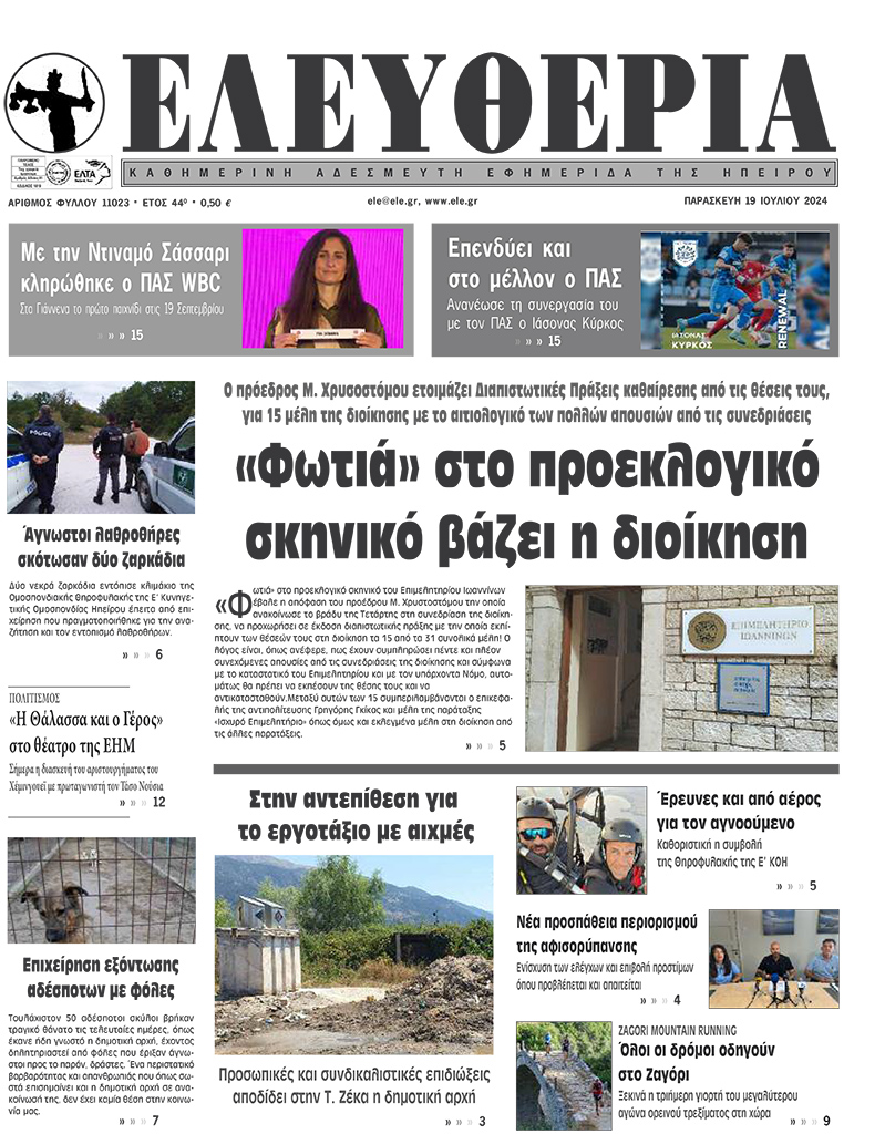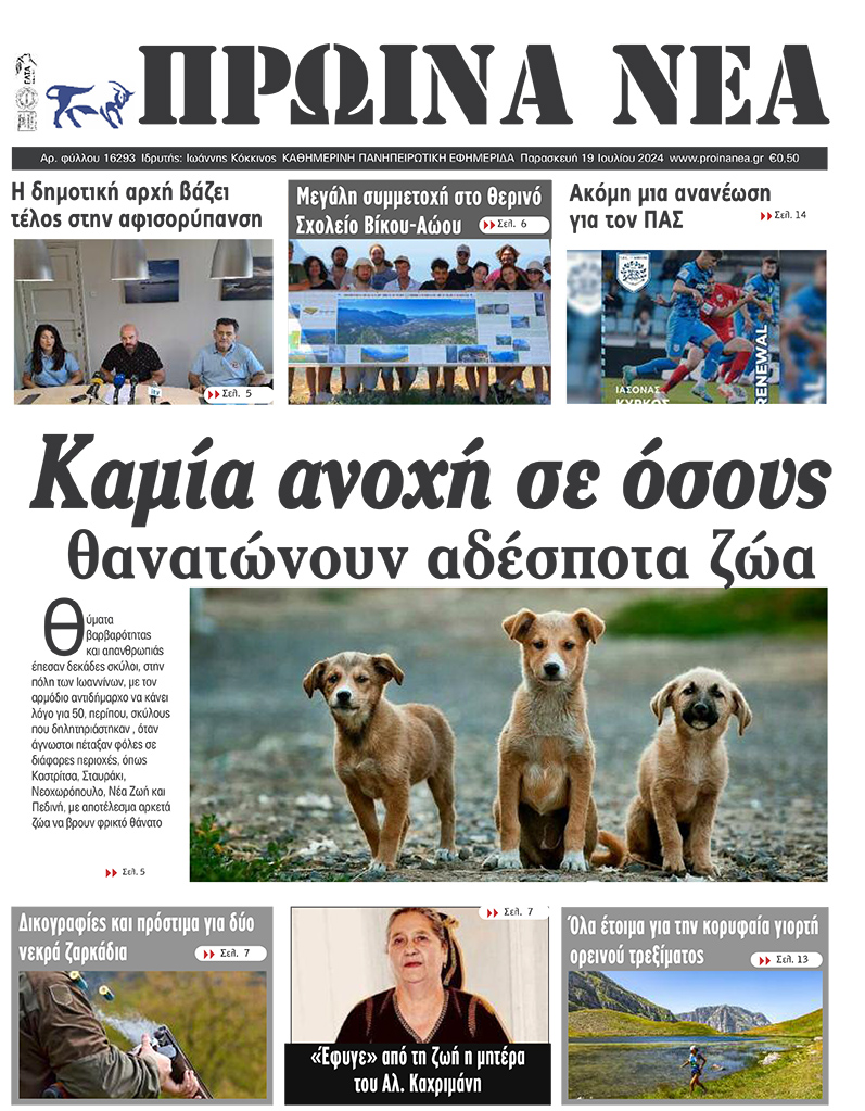 ΑρχικήΕΙΔΗΣΕΙΣΗΠΕΙΡΟΣ ΗΠΕΙΡΟΣ Τα πρωτοσέλιδα των γιαννιώτικων εφημερίδων 19.07.2024 0 FacebookTwitterWhatsAppEmailΤυπώνωViber Διαβάστε στα πρωτοσέλιδα των γιαννιώτικων εφημερίδων της Παρασκευής 19 Ιουλίου TagsΓΙΑΝΝΙΩΤΙΚΕΣ ΕΦΗΜΕΡΙΔΕΣΠΡΩΤΟΣΕΛΙΔΑ FacebookTwitterWhatsAppEmailΤυπώνωViber Προηγούμενο άρθροΈρευνες και από αέρος για τον αγνοούμενοΕπόμενο άρθρο«Η Θάλασσα και ο Γέρος» στο θέατρο της ΕΗΜ ΣΧΕΤΙΚΑ ΑΡΘΡΑ Τα πρωτοσέλιδα των γιαννιώτικων εφημερίδων TOP STORIES 24.12.2025 Τα πρωτοσέλιδα των γιαννιώτικων εφημερίδων ΗΠΕΙΡΟΣ 23.12.2025 Τα πρωτοσέλιδα των γιαννιώτικων εφημερίδων ΗΠΕΙΡΟΣ 19.12.2025 Τα πρωτοσέλιδα των γιαννιώτικων εφημερίδων ΗΠΕΙΡΟΣ 18.12.2025 Τα πρωτοσέλιδα των γιαννιώτικων εφημερίδων ΗΠΕΙΡΟΣ 17.12.2025 Τα πρωτοσέλιδα των γιαννιώτικων εφημερίδων ΗΠΕΙΡΟΣ 16.12.2025 ΣΤΗΝ ΙΔΙΑ ΚΑΤΗΓΟΡΙΑ Έντονες αντιδράσεις στα κεντρικά προκαλεί το πρωτοσέλιδο των «Πρωινών Νέων» ΗΠΕΙΡΟΣ 24.12.2025 Επιτυχημένη παρουσίαση των αποτελεσμάτων του προγράμματος GINGER για την πρόληψη της άνοιας ΗΠΕΙΡΟΣ 24.12.2025 Ηλεκτρονική βεβαίωση παραβάσεων από τη Δημοτική Αστυνομία Ιωαννίνων ΗΠΕΙΡΟΣ 24.12.2025 Χριστουγεννιάτικες μελωδίες και ευχές στο Δημαρχείο Ιωαννίνων ΗΠΕΙΡΟΣ 24.12.2025 Ιωάννινα: Συνελήφθη ιδιοκτήτης καταστήματος για διάθεση αλκοόλ σε ανηλίκους ΗΠΕΙΡΟΣ 24.12.2025 Τα πρωτοσέλιδα των γιαννιώτικων εφημερίδων TOP STORIES 24.12.2025 ΜΗ ΧΑΣΕΤΕ Έντονες αντιδράσεις στα κεντρικά προκαλεί το πρωτοσέλιδο των «Πρωινών Νέων» Λήγει στις 31 Δεκεμβρίου η προθεσμία για τα τέλη κυκλοφορίας 2026 Χριστουγεννιάτικη έξοδος με αυξημένη κίνηση και αγροτικά μπλόκα Ανοιχτά τα καταστήματα την παραμονή Χριστουγέννων Κακοκαιρία τα Χριστούγεννα – Ισχυρά φαινόμενα σε πολλές περιοχές ΔΗΜΟΦΙΛΗ Επιτυχημένη παρουσίαση των αποτελεσμάτων του προγράμματος GINGER για την πρόληψη της άνοιας Γεραπετρίτης: Ανοικτοί δίαυλοι με την Τουρκία για αποτροπή εντάσεων Τα επιστημονικά «θαύματα» του 2025: Εξελίξεις που γεννούν ελπίδα για το μέλλον Ηλεκτρονική βεβαίωση παραβάσεων από τη Δημοτική Αστυνομία Ιωαννίνων Χριστουγεννιάτικη έξοδος με αυξημένη κίνηση και αγροτικά μπλόκα