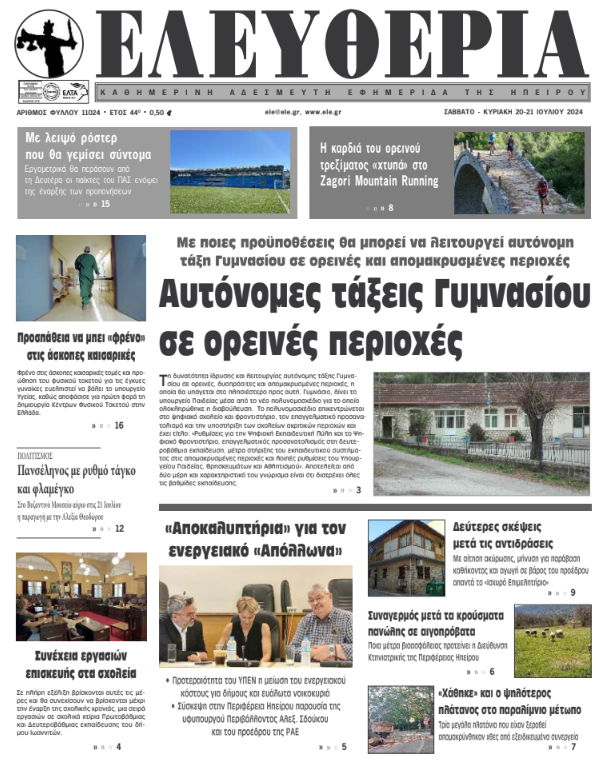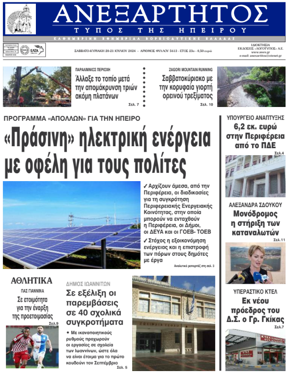 Διαβάστε στα πρωτοσέλιδα των γιαννιώτικων εφημερίδων 20-21 Ιουλίου