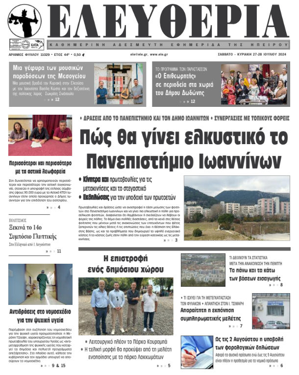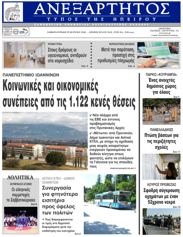 ΑρχικήTOP STORIES TOP STORIESΗΠΕΙΡΟΣ Τα πρωτοσέλιδα των γιαννιώτικων εφημερίδων 27.07.2024 0 FacebookTwitterWhatsAppEmailΤυπώνωViber Διαβάστε στα πρωτοσέλιδα των γιαννιώτικων εφημερίδων της 27-28 Ιουλίου TagsΓΙΑΝΝΙΩΤΙΚΕΣ ΕΦΗΜΕΡΙΔΕΣΠΡΩΤΟΣΕΛΙΔΑ FacebookTwitterWhatsAppEmailΤυπώνωViber Προηγούμενο άρθροΣοβαρό πλήγμα οι κενές θέσεις στο ΠανεπιστήμιοΕπόμενο άρθροΕναρμόνιση κυκλοφορίας στους κόμβους ΣΧΕΤΙΚΑ ΑΡΘΡΑ Τα πρωτοσέλιδα των γιαννιώτικων εφημερίδων ΗΠΕΙΡΟΣ 16.12.2025 Τα πρωτοσέλιδα των γιαννιώτικων εφημερίδων ΗΠΕΙΡΟΣ 13.12.2025 Τα πρωτοσέλιδα των γιαννιώτικων εφημερίδων ΗΠΕΙΡΟΣ 12.12.2025 Τα πρωτοσέλιδα των γιαννιώτικων εφημερίδων ΗΠΕΙΡΟΣ 11.12.2025 Τα πρωτοσέλιδα των γιαννιώτικων εφημερίδων ΗΠΕΙΡΟΣ 10.12.2025 Τα πρωτοσέλιδα των γιαννιώτικων εφημερίδων ΗΠΕΙΡΟΣ 09.12.2025 ΣΤΗΝ ΙΔΙΑ ΚΑΤΗΓΟΡΙΑ Εορτάζουν οι προστάτες του Πυροσβεστικού Σώματος ΗΠΕΙΡΟΣ 16.12.2025 Σε ισχύ το εορταστικό ωράριο και στα Ιωάννινα TOP STORIES 16.12.2025 Χριστουγεννιάτικο bazaar από τη Στέγη Αυτιστικών Ατόμων «Ελένη Γύρα» ΗΠΕΙΡΟΣ 16.12.2025 Ανήλιο: 65χρονος εντοπίστηκε απαγχονισμένος στο σπίτι του ΗΠΕΙΡΟΣ 16.12.2025 Ιωάννινα: Κατασχέθηκαν 215 κιλά κάνναβης – Τρεις συλλήψεις μετά από καταδίωξη ΗΠΕΙΡΟΣ 16.12.2025 Προπληρωμές επιδομάτων και δώρου Χριστουγέννων από τη ΔΥΠΑ την Τετάρτη 17 Δεκεμβρίου TOP STORIES 16.12.2025 ΜΗ ΧΑΣΕΤΕ Σε ισχύ το εορταστικό ωράριο και στα Ιωάννινα Ιωάννινα: Κατασχέθηκαν 215 κιλά κάνναβης – Τρεις συλλήψεις μετά από καταδίωξη Προπληρωμές επιδομάτων και δώρου Χριστουγέννων από τη ΔΥΠΑ την Τετάρτη 17 Δεκεμβρίου Προϋπολογισμός 2026: Πακέτο μέτρων 4,9 δισ. ευρώ για στήριξη πολιτών και εισοδημάτων Σε απεργιακό κλοιό η Ήπειρος: Κλειστοί δήμοι, αγρότες και εργαζόμενοι στους δρόμους ΔΗΜΟΦΙΛΗ Λάθος βαφή μαλλιών; Πώς μπορείς να το διορθώσεις άμεσα. Σκύλος έμεινε δίπλα στον νεκρό ιδιοκτήτη του στην επίθεση στο Σίδνεϊ Σε απεργιακό κλοιό η Ήπειρος: Κλειστοί δήμοι, αγρότες και εργαζόμενοι στους δρόμους Ξεκινά η πιλοτική λειτουργία του Εργάνη 2 Εορτάζουν οι προστάτες του Πυροσβεστικού Σώματος