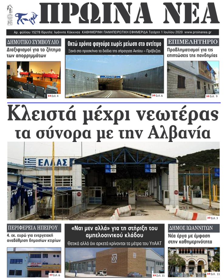 ΑρχικήΕΙΔΗΣΕΙΣΗΠΕΙΡΟΣ ΗΠΕΙΡΟΣ Τα πρωτοσέλιδα των γιαννιώτικων εφημερίδων 01.07.2020 185 FacebookTwitterWhatsAppEmailΤυπώνωViber Διαβάστε στα πρωτοσέλιδα των γιαννιώτικων εφημερίδων σήμερα Τετάρτη 1 Ιουλίου TagsΓΙΑΝΝΙΩΤΙΚΕΣ ΕΦΗΜΕΡΙΔΕΣΠΡΩΤΟΣΕΛΙΔΑ FacebookTwitterWhatsAppEmailΤυπώνωViber Προηγούμενο άρθροΑποχρώσεις- Δεν είναι διαδικαστικό θέμα οι διαδηλώσειςΕπόμενο άρθροΛουκέτο 15 ημερών σε καταστήματα εστίασης για μη τήρηση των μέτρων ΣΧΕΤΙΚΑ ΑΡΘΡΑ Τα πρωτοσέλιδα των γιαννιώτικων εφημερίδων TOP STORIES 11.11.2025 Τα πρωτοσέλιδα των γιαννιώτικων εφημερίδων TOP STORIES 08.11.2025 Τα πρωτοσέλιδα των γιαννιώτικων εφημερίδων ΗΠΕΙΡΟΣ 07.11.2025 Τα πρωτοσέλιδα των γιαννιώτικων εφημερίδων ΗΠΕΙΡΟΣ 06.11.2025 Τα πρωτοσέλιδα των γιαννιώτικων εφημερίδων ΗΠΕΙΡΟΣ 05.11.2025 Τα πρωτοσέλιδα των γιαννιώτικων εφημερίδων ΗΠΕΙΡΟΣ 04.11.2025 ΣΤΗΝ ΙΔΙΑ ΚΑΤΗΓΟΡΙΑ Ενημερωτική δράση για τον σακχαρώδη διαβήτη στα Ιωάννινα ΗΠΕΙΡΟΣ 11.11.2025 Συνελήφθη αλλοδαπός διωκόμενος στην Κακαβιά ΗΠΕΙΡΟΣ 11.11.2025 Κατασχέθηκαν 45 αρνιά στην Πρέβεζα – Δύο συλλήψεις ΗΠΕΙΡΟΣ 11.11.2025 43χρονος βρέθηκε νεκρός εντός Ι.Χ. στο Τέροβο ΗΠΕΙΡΟΣ 11.11.2025 Επί τάπητος υποδομές, περιβάλλον και ΤΠΣ ΗΠΕΙΡΟΣ 11.11.2025 Σε αυξημένη ετοιμότητα η Ήπειρος για τη γρίπη των πτηνών ΗΠΕΙΡΟΣ 11.11.2025 ΜΗ ΧΑΣΕΤΕ 43χρονος βρέθηκε νεκρός εντός Ι.Χ. στο Τέροβο Επίδομα θέρμανσης: Νέες οδηγίες της ΑΑΔΕ Σε αυξημένη ετοιμότητα η Ήπειρος για τη γρίπη των πτηνών Δωρεά ζωής από ασθενή στο ΠΓΝΙ Νέες αντιδράσεις για τις παρεμβάσεις στο Γράμμο ΔΗΜΟΦΙΛΗ Αυξάνεται 50% το ανώτατο όριο του πετρελαίου για το οποίο επιστρέφεται ο ΕΦΚ στους αγρότες Ήττα στις λεπτομέρεις για τον ΠΑΣ WBC στις Σέρρες Η αναπτυξιακή δυναμική της ελληνικής Χειροτεχνίας Φάμελλος: Πάνω από όλα είναι τα συμφέροντα της κοινωνίας Αυστηρό μήνυμα ΗΠΑ προς Τουρκία: Σταματήστε αγορές αερίου και πετρελαίου από Ρωσία
