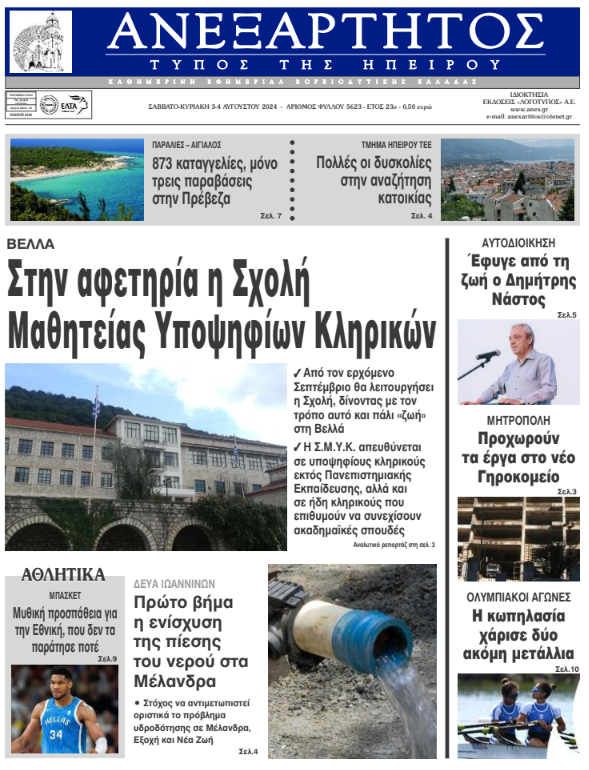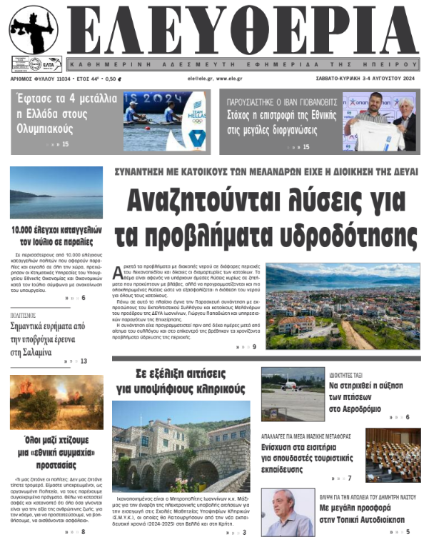 ΑρχικήΕΙΔΗΣΕΙΣΗΠΕΙΡΟΣ ΗΠΕΙΡΟΣ Τα πρωτοσέλιδα των γιαννιώτικων εφημερίδων 03.08.2024 0 FacebookTwitterWhatsAppEmailΤυπώνωViber Διαβάστε στα πρωτοσέλιδα των γιαννιώτικων εφημερίδων της 3-4 Αυγούστου TagsΓΙΑΝΝΙΩΤΙΚΕΣ ΕΦΗΜΕΡΙΔΕΣΠΡΩΤΟΣΕΛΙΔΑ FacebookTwitterWhatsAppEmailΤυπώνωViber Προηγούμενο άρθροΣε εξέλιξη αιτήσεις για υποψήφιους κληρικούςΕπόμενο άρθροΑναζητούνται λύσεις για τα προβλήματα υδροδότησης ΣΧΕΤΙΚΑ ΑΡΘΡΑ Τα πρωτοσέλιδα των γιαννιώτικων εφημερίδων TOP STORIES 22.11.2025 Τα πρωτοσέλιδα των γιαννιώτικων εφημερίδων ΗΠΕΙΡΟΣ 21.11.2025 Τα πρωτοσέλιδα των γιαννιώτικων εφημερίδων TOP STORIES 20.11.2025 Τα πρωτοσέλιδα των γιαννιώτικων εφημερίδων ΗΠΕΙΡΟΣ 19.11.2025 Τα πρωτοσέλιδα των γιαννιώτικων εφημερίδων ΗΠΕΙΡΟΣ 18.11.2025 Τα πρωτοσέλιδα των γιαννιώτικων εφημερίδων ΗΠΕΙΡΟΣ 15.11.2025 ΣΤΗΝ ΙΔΙΑ ΚΑΤΗΓΟΡΙΑ Τα πρωτοσέλιδα των γιαννιώτικων εφημερίδων TOP STORIES 22.11.2025 Ημέρα Ενόπλων Δυνάμεων με αποκαλυπτήρια προτομών ΗΠΕΙΡΟΣ 21.11.2025 Έρευνες για φόλες στα Τζουμέρκα μετά τον θάνατο κυνηγετικών σκύλων ΗΠΕΙΡΟΣ 21.11.2025 Σε δημόσια πρόσκληση για την αξιοποίηση του Ξενία Ηγουμενίτσας προχωρά η ΕΤΑΔ ΗΠΕΙΡΟΣ 21.11.2025 Ήχησε το «112» στα Ιωάννινα ΗΠΕΙΡΟΣ 21.11.2025 Υπερχείλιση του Αράχθου στην Πλάκα – Φερτά υλικά κάλυψαν τη γέφυρα Μπέλεϋ ΗΠΕΙΡΟΣ 21.11.2025 ΜΗ ΧΑΣΕΤΕ Ικανοποίηση για τη μείωση της ανεργίας Τα πρωτοσέλιδα των γιαννιώτικων εφημερίδων Ημέρα Ενόπλων Δυνάμεων με αποκαλυπτήρια προτομών Ήχησε το «112» στα Ιωάννινα Υπερχείλιση του Αράχθου στην Πλάκα – Φερτά υλικά κάλυψαν τη γέφυρα Μπέλεϋ ΔΗΜΟΦΙΛΗ ΥΠΕΡ e-ΕΦΚΑ -Επιστροφή αχρεωστήτως καταβληθέντων Νέα μέτρα προστασίας της κτηνοτροφίας Τα πρωτοσέλιδα των γιαννιώτικων εφημερίδων Τα του Καίσαρος… 22.698 εγγεγραμμένοι άνεργοι τον Οκτώβριο στην Ήπειρο