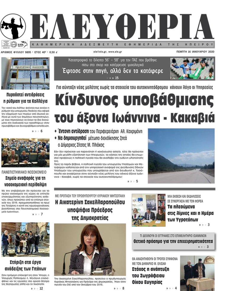 Διαβάστε στα πρωτοσέλιδα των γιαννιώτικων εφημερίδων σήμερα, Πέμπτη 16 Ιανουαρίου.