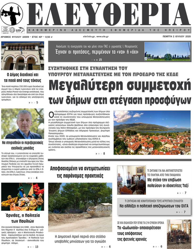 ΑρχικήΕΙΔΗΣΕΙΣΗΠΕΙΡΟΣ ΗΠΕΙΡΟΣ Τα πρωτοσέλιδα των γιαννιώτικων εφημερίδων 02.07.2020 192 FacebookTwitterWhatsAppEmailΤυπώνωViber Διαβάστε στα πρωτοσέλιδα των γιαννιώτικων εφημερίδων σήμερα Πέμπτη 2 Ιουλίου TagsΓΙΑΝΝΙΩΤΙΚΕΣ ΕΦΗΜΕΡΙΔΕΣΠΡΩΤΟΣΕΛΙΔΑ FacebookTwitterWhatsAppEmailΤυπώνωViber Προηγούμενο άρθροΈκτακτο επίδομα ανεργίας σε εποχικούς του τουρισμούΕπόμενο άρθροΧωρίς νερό Σεισμόπληκτα, Ανθούπολη και Κ. Νεοχωρόπουλο ΣΧΕΤΙΚΑ ΑΡΘΡΑ Τα πρωτοσέλιδα των γιαννιώτικων εφημερίδων TOP STORIES 22.11.2025 Τα πρωτοσέλιδα των γιαννιώτικων εφημερίδων ΗΠΕΙΡΟΣ 21.11.2025 Τα πρωτοσέλιδα των γιαννιώτικων εφημερίδων TOP STORIES 20.11.2025 Τα πρωτοσέλιδα των γιαννιώτικων εφημερίδων ΗΠΕΙΡΟΣ 19.11.2025 Τα πρωτοσέλιδα των γιαννιώτικων εφημερίδων ΗΠΕΙΡΟΣ 18.11.2025 Τα πρωτοσέλιδα των γιαννιώτικων εφημερίδων ΗΠΕΙΡΟΣ 15.11.2025 ΣΤΗΝ ΙΔΙΑ ΚΑΤΗΓΟΡΙΑ Τροχαίο με δύο τραυματίες στην Καστρίτσα από εκτροπή ΙΧ ΗΠΕΙΡΟΣ 23.11.2025 Κλειστός ο δρόμος Παλαιοχωρίου–Συρράκου λόγω καθίζησης ΗΠΕΙΡΟΣ 23.11.2025 Τραγωδία στους Κιρκιζάτες με έναν νεκρό και μία γυναίκα σε νοσηλεία ΗΠΕΙΡΟΣ 23.11.2025 Βροχές, χιόνια και χαμηλές θερμοκρασίες στην Ήπειρο ΗΠΕΙΡΟΣ 23.11.2025 Ενθρονίστηκε στο Δελβινάκι ο νέος Μητροπολίτης Αλέξιος ΗΠΕΙΡΟΣ 23.11.2025 Καθιζήσεις, πλημμύρες και εκτεταμένες κατολισθήσεις στα Τζουμέρκα ΗΠΕΙΡΟΣ 23.11.2025 ΜΗ ΧΑΣΕΤΕ Βροχές, χιόνια και χαμηλές θερμοκρασίες στην Ήπειρο Ενθρονίστηκε στο Δελβινάκι ο νέος Μητροπολίτης Αλέξιος Καθιζήσεις, πλημμύρες και εκτεταμένες κατολισθήσεις στα Τζουμέρκα Ικανοποίηση για τη μείωση της ανεργίας Τα πρωτοσέλιδα των γιαννιώτικων εφημερίδων ΔΗΜΟΦΙΛΗ Τραγωδία στους Κιρκιζάτες με έναν νεκρό και μία γυναίκα σε νοσηλεία Ενθρονίστηκε στο Δελβινάκι ο νέος Μητροπολίτης Αλέξιος ΣΤΟΙΧΕΙΑ ΤΗΣ ΕΛΣΤΑΤ -Αυξήθηκαν οι συμβολαιογραφικές πράξεις Καθιζήσεις, πλημμύρες και εκτεταμένες κατολισθήσεις στα Τζουμέρκα Βροχές, χιόνια και χαμηλές θερμοκρασίες στην Ήπειρο