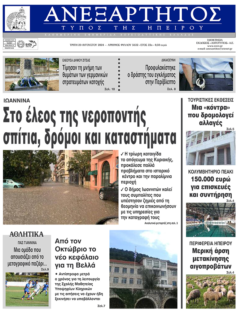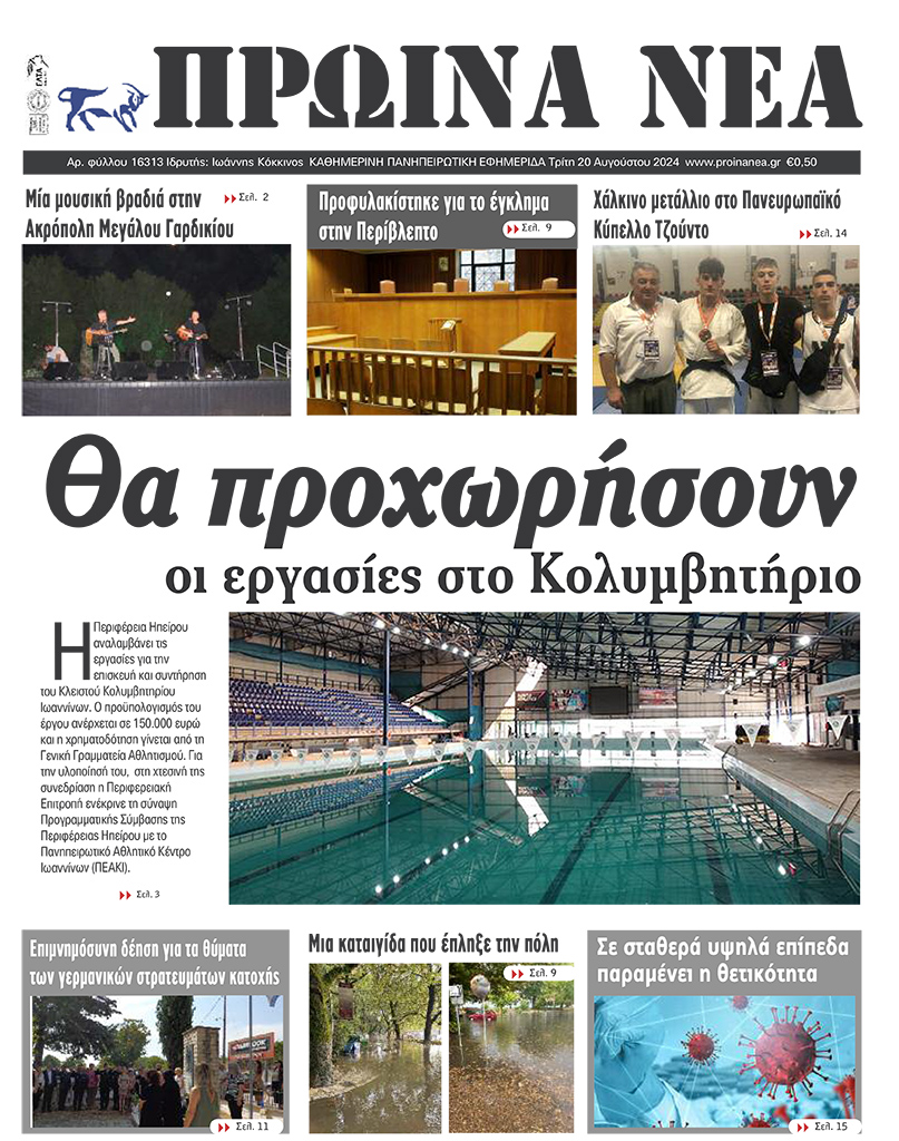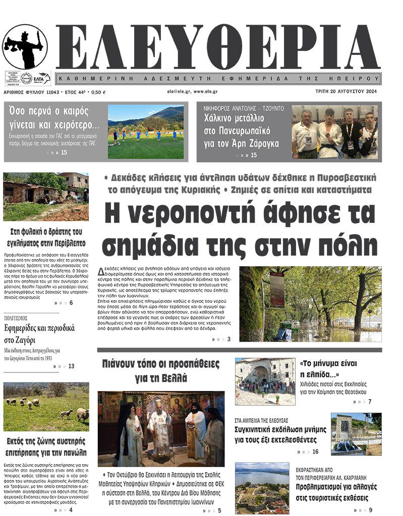 ΑρχικήTOP STORIES TOP STORIESΗΠΕΙΡΟΣ Τα πρωτοσέλιδα των γιαννιώτικων εφημερίδων 20.08.2024 0 FacebookTwitterWhatsAppEmailΤυπώνωViber Διαβάστε στα πρωτοσέλιδα των γιαννιώτικων εφημερίδων της Τρίτης 20 Αυγούστου TagsΓΙΑΝΝΙΩΤΙΚΕΣ ΕΦΗΜΕΡΙΔΕΣΠΡΩΤΟΣΕΛΙΔΑ FacebookTwitterWhatsAppEmailΤυπώνωViber Προηγούμενο άρθρο«Το μήνυμα είναι η ελπίδα…»Επόμενο άρθροΠιάνουν τόπο οι προσπάθειες για τη Βελλά ΣΧΕΤΙΚΑ ΑΡΘΡΑ Τα πρωτοσέλιδα των γιαννιώτικων εφημερίδων TOP STORIES 13.01.2026 Τα πρωτοσέλιδα των γιαννιώτικων εφημερίδων ΗΠΕΙΡΟΣ 11.01.2026 Τα πρωτοσέλιδα των γιαννιώτικων εφημερίδων ΗΠΕΙΡΟΣ 09.01.2026 Τα πρωτοσέλιδα των γιαννιώτικων εφημερίδων ΗΠΕΙΡΟΣ 08.01.2026 Τα πρωτοσέλιδα των γιαννιώτικων εφημερίδων ΗΠΕΙΡΟΣ 06.01.2026 Τα πρωτοσέλιδα των γιαννιώτικων εφημερίδων ΗΠΕΙΡΟΣ 01.01.2026 ΣΤΗΝ ΙΔΙΑ ΚΑΤΗΓΟΡΙΑ ΕΞΑΙΤΙΑΣ ΤΩΝ ΧΑΜΗΛΩΝ ΘΕΡΜΟΚΡΑΣΙΩΝ -Νωρίτερα η βραδινή αποκομιδή ΗΠΕΙΡΟΣ 13.01.2026 Με λαμπρότητα εορτάστηκε η μνήμη του Αγίου Ιερεμία στη Ζίτσα ΗΠΕΙΡΟΣ 13.01.2026 Γεωργόπουλος για Περιφέρεια Ηπείρου: «Αναγκαία αλλαγή ηγεσίας και διαφάνειας» ΗΠΕΙΡΟΣ 13.01.2026 Στην Κομισιόν οι διακοπές ρεύματος στην Ήπειρο ΗΠΕΙΡΟΣ 13.01.2026 Αντιδράσεις για τη συμφωνία Ε.Ε. – Mercosur και επιπτώσεις στον πρωτογενή τομέα της Ηπείρου ΗΠΕΙΡΟΣ 13.01.2026 Άμεση σύλληψη για κλοπή τσάντας από Ι.Χ. ΗΠΕΙΡΟΣ 13.01.2026 ΜΗ ΧΑΣΕΤΕ Το σχέδιο του Δήμου Ιωαννιτών για την αντιμετώπιση του κυκλοφοριακού προβλήματος Περιβαλλοντική καταστροφή στο Μονολίθι Πλημμύρισε ο χώρος πλύσης των απορριμματοφόρων του Δήμου «Μυρίζει συγκάλυψη ευθυνών» Δοκιμάζονται οι αντοχές των επιχειρήσεων ΔΗΜΟΦΙΛΗ ΣΤ. ΚΑΛΑΦΑΤΗΣ -Χρηματοδοτήσεις 370 εκατ. ευρώ μέσω ΤΑΑ στα ερευνητικά κέντρα 48ωρη απεργία ταξί – Τα αιτήματα και οι λόγοι των οδηγών Συνάντηση Τασούλα – Πιερρακάκη για την ελληνική οικονομία και τις ευρωπαϊκές προκλήσεις Άνοιξε η πλατφόρμα της ΑΑΔΕ για χωριστές φορολογικές δηλώσεις Πλημμύρισε ο χώρος πλύσης των απορριμματοφόρων του Δήμου