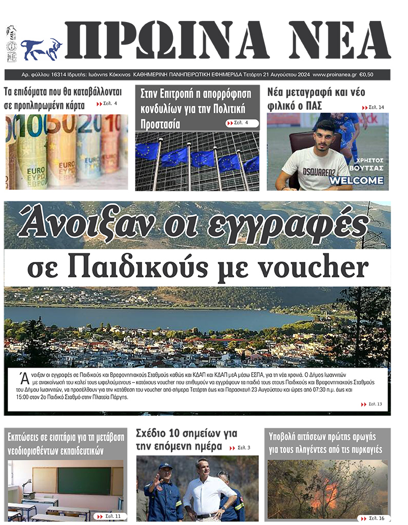 Διαβάστε στα πρωτοσέλιδα των γιαννιώτικων εφημερίδων της Τετάρτης 21 Αυγούστου