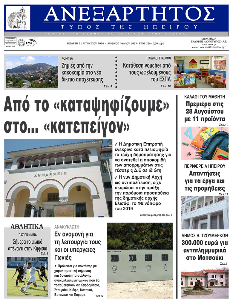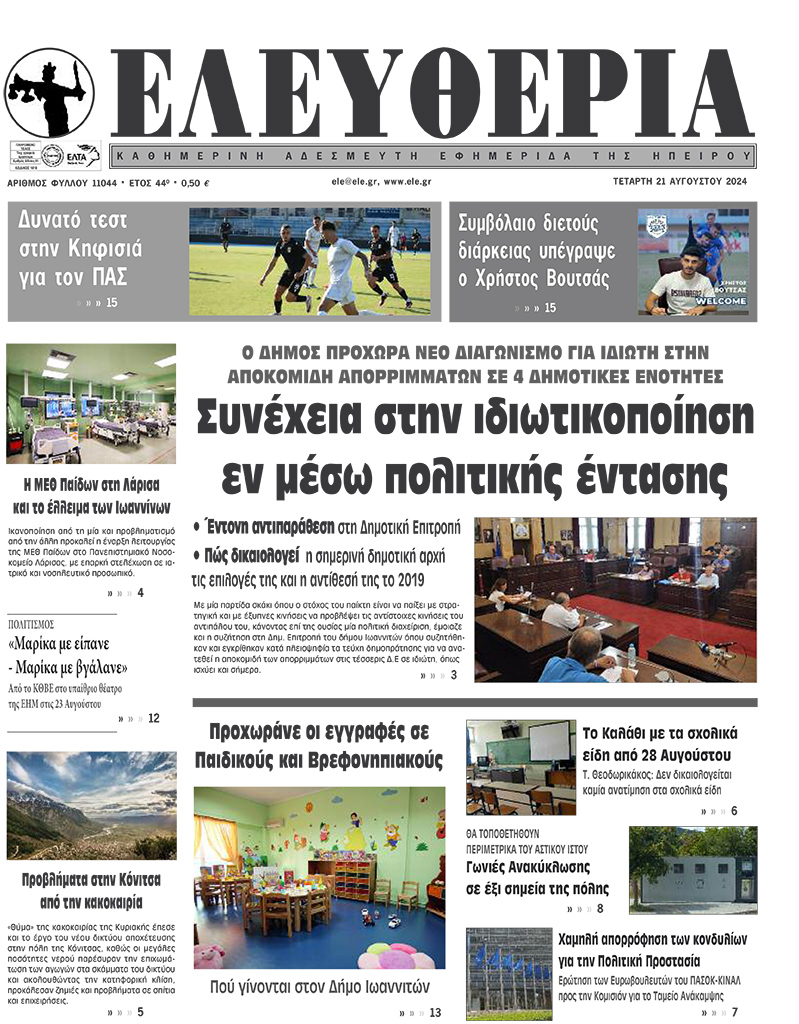 Διαβάστε στα πρωτοσέλιδα των γιαννιώτικων εφημερίδων της Τετάρτης 21 Αυγούστου