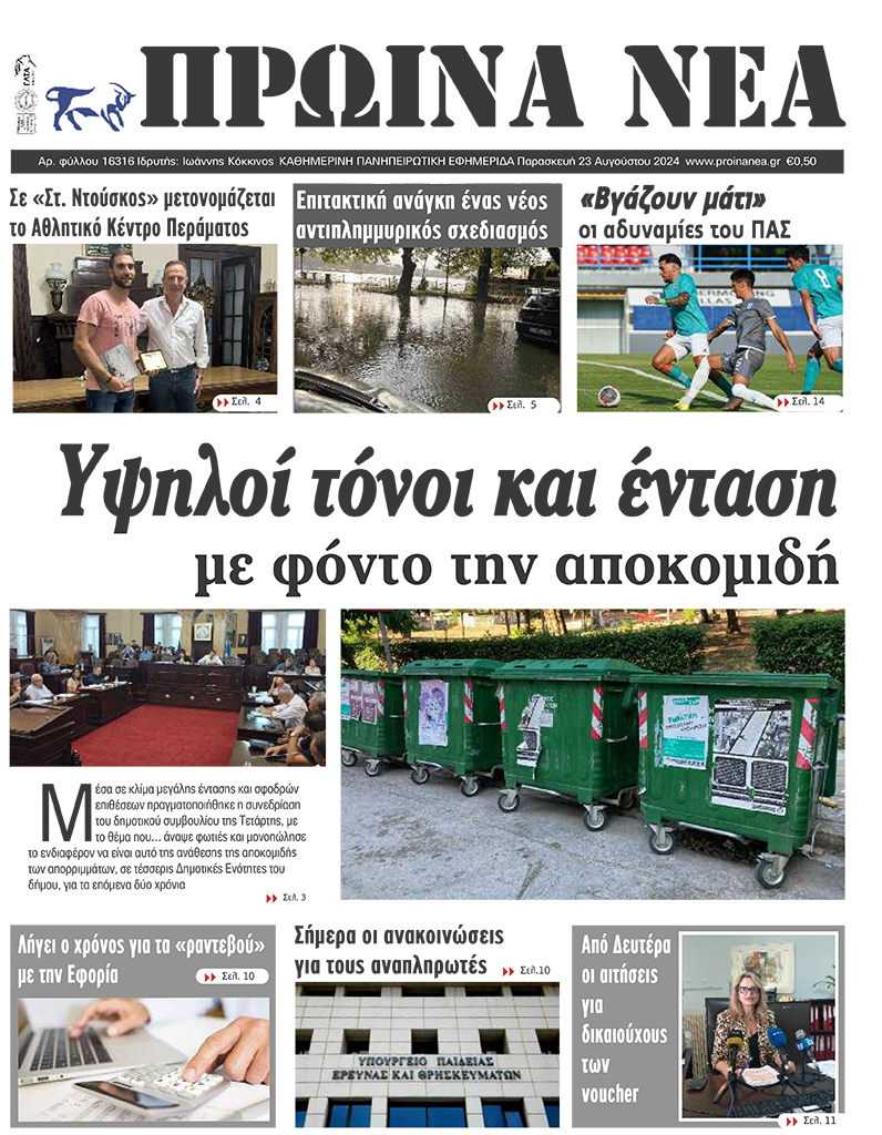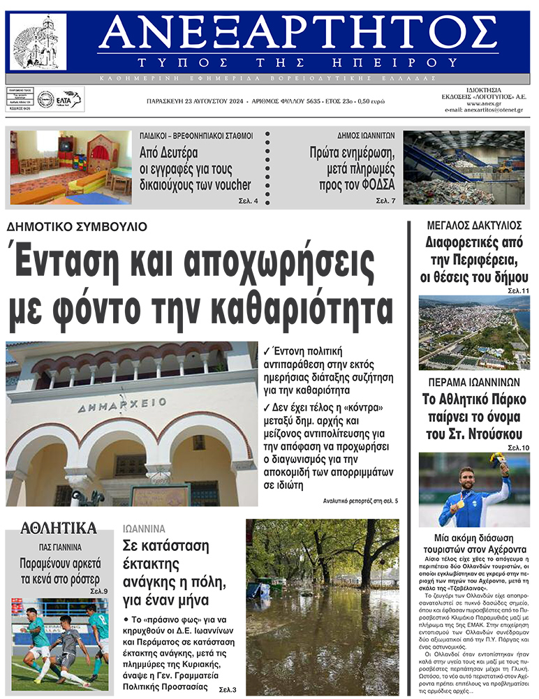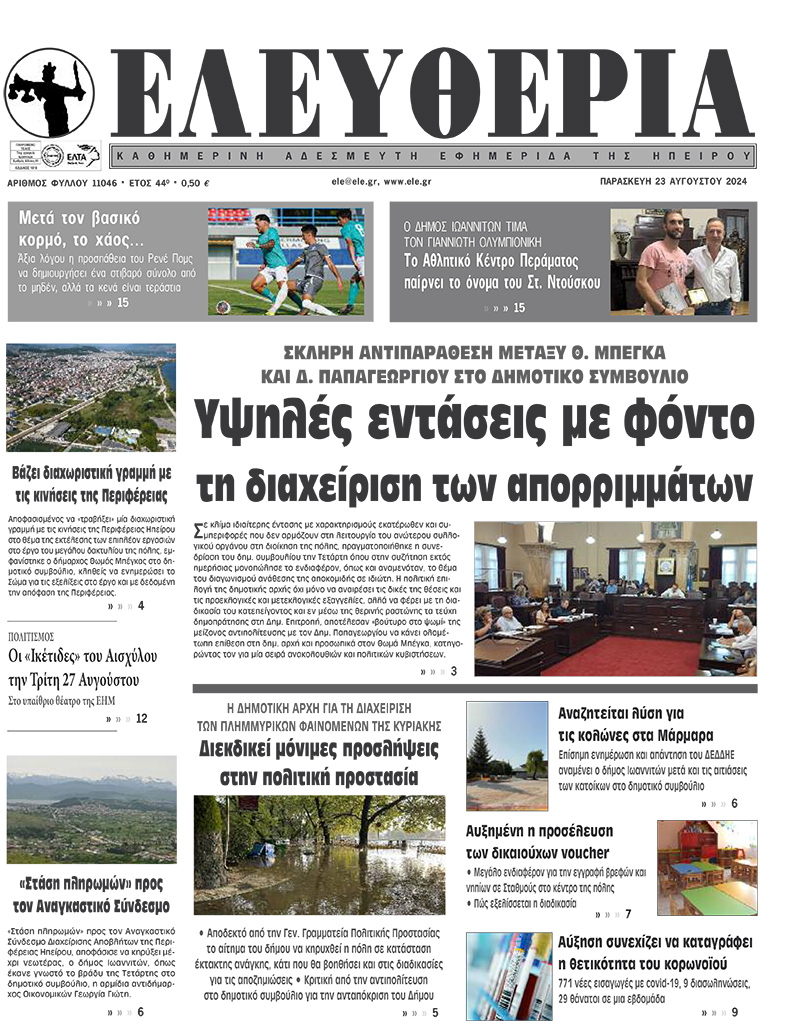 Διαβάστε στα πρωτοσέλιδα των γιαννιώτικων εφημερίδων της Παρασκευής 23 Αυγούστου