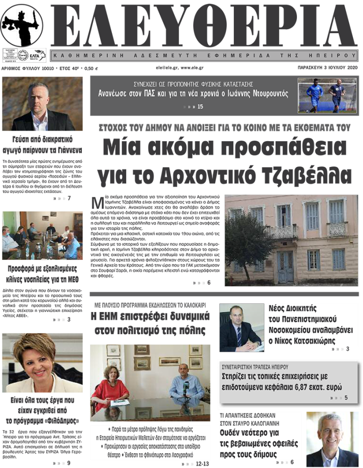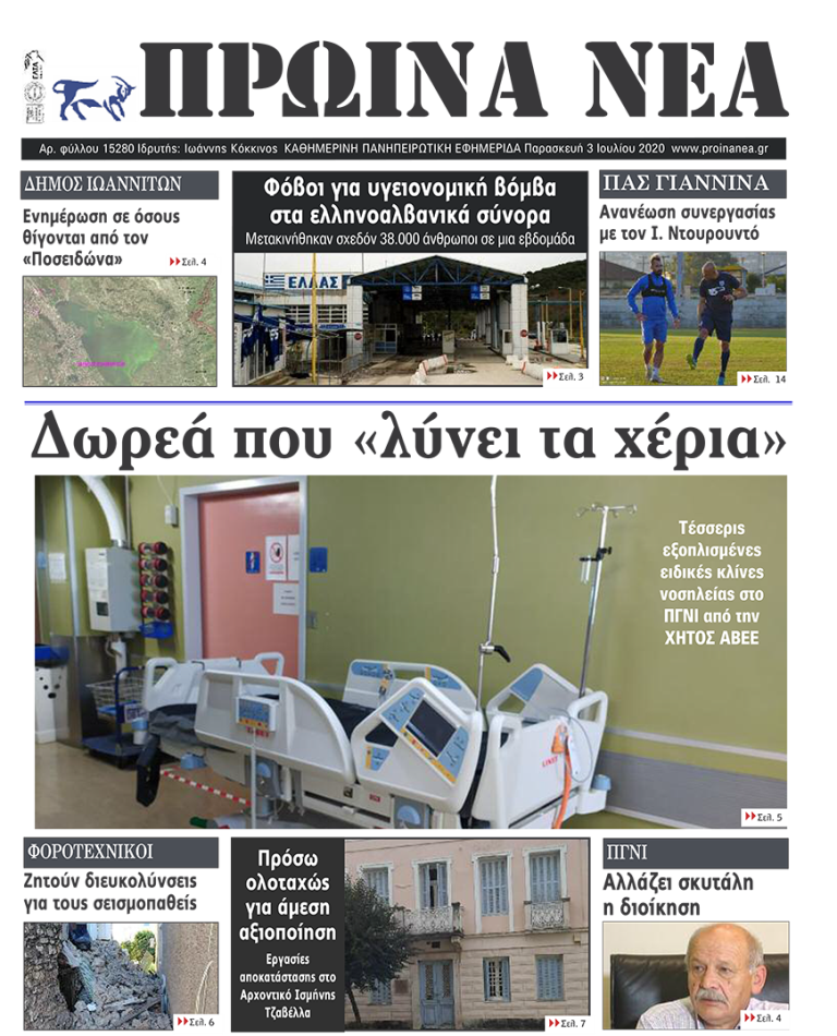 ΑρχικήΕΙΔΗΣΕΙΣΗΠΕΙΡΟΣ ΗΠΕΙΡΟΣ Τα πρωτοσέλιδα των γιαννιώτικων εφημερίδων 03.07.2020 187 FacebookTwitterWhatsAppEmailΤυπώνωViber Διαβάστε στα πρωτοσέλιδα των γιαννιώτικων εφημερίδων σήμερα Παρασκευή 3 Ιουλίου TagsΓΙΑΝΝΙΩΤΙΚΕΣ ΕΦΗΜΕΡΙΔΕΣΠΡΩΤΟΣΕΛΙΔΑ FacebookTwitterWhatsAppEmailΤυπώνωViber Προηγούμενο άρθρο28 νέα κρούσματα σε 24 ώρες -Δύο θετικά τεστ σε 1.972 δείγματα ταξιδιωτώνΕπόμενο άρθροΓεύση από διακρατικό αγωγό παίρνουν τα Γιάννενα ΣΧΕΤΙΚΑ ΑΡΘΡΑ Τα πρωτοσέλιδα των γιαννιώτικων εφημερίδων TOP STORIES 05.12.2025 Τα πρωτοσέλιδα των γιαννιώτικων εφημερίδων ΗΠΕΙΡΟΣ 04.12.2025 Τα πρωτοσέλιδα των γιαννιώτικων εφημερίδων ΗΠΕΙΡΟΣ 03.12.2025 Τα πρωτοσέλιδα των γιαννιώτικων εφημερίδων TOP STORIES 02.12.2025 Τα πρωτοσέλιδα των γιαννιώτικων εφημερίδων ΗΠΕΙΡΟΣ 29.11.2025 Τα πρωτοσέλιδα των γιαννιώτικων εφημερίδων ΗΠΕΙΡΟΣ 28.11.2025 ΣΤΗΝ ΙΔΙΑ ΚΑΤΗΓΟΡΙΑ Φιάσκο για την ΕΛ.ΑΣ η διαφυγή των ληστών στην Αλβανία ΗΠΕΙΡΟΣ 05.12.2025 Χρηματοδότηση 93.000€ στα ΤΟΕΒ Αράχθου και Λούρου ΗΠΕΙΡΟΣ 05.12.2025 Ηγουμενίτσα: Δύο συλλήψεις για προώθηση παράτυπων μεταναστών ΗΠΕΙΡΟΣ 05.12.2025 Κοινό μέτωπο για την προστασία του ΧΥΤΥ Βλαχέρνας και της λίμνης Πουρναρίου ΗΠΕΙΡΟΣ 05.12.2025 Στο 8ο Περιφερειακό Συνέδριο Ξενοδόχων η Τοπική Κοινότητα ΝΙΚΗΣ ΗΠΕΙΡΟΣ 05.12.2025 Πυρκαγιά σε μονοκατοικία στην Πέρδικα ΗΠΕΙΡΟΣ 05.12.2025 ΜΗ ΧΑΣΕΤΕ «Ασπίδα κατά της παραπληροφόρησης ο τοπικός Τύπος» Φιάσκο για την ΕΛ.ΑΣ η διαφυγή των ληστών στην Αλβανία Τι ισχύει για το Δώρο Χριστουγέννων στους μισθωτούς του ιδιωτικού τομέα Έντονες αντιδράσεις για τη μεταφορά ζωικών αποβλήτων Τα πρωτοσέλιδα των γιαννιώτικων εφημερίδων ΔΗΜΟΦΙΛΗ Άνδρας στη Χίο έβαλε φωτιά με αναπτήρα στο χριστουγεννιάτικο δέντρο ΧΡΙΣΤΟΥΓΕΝΝΙΑΤΙΚΟ ΔΕΝΤΡΟ -Συμβουλές για ασφαλή και οικολογική διακόσμηση Με πάθος και σεβασμό για την έκπληξη ο ΠΑΣ Τα του Καίσαρος… «Ασπίδα κατά της παραπληροφόρησης ο τοπικός Τύπος»