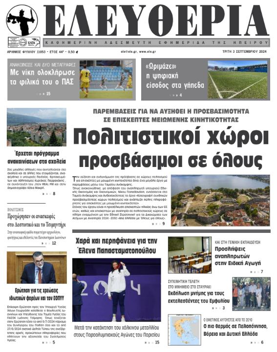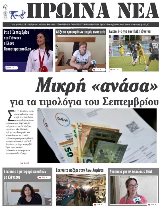 ΑρχικήΕΙΔΗΣΕΙΣΗΠΕΙΡΟΣ ΗΠΕΙΡΟΣ Τα πρωτοσέλιδα των γιαννιώτικων εφημερίδων 03.09.2024 0 FacebookTwitterWhatsAppEmailΤυπώνωViber Διαβάστε στα πρωτοσέλιδα των γιαννιώτικων εφημερίδων της Τρίτης 3 Σεπτεμβρίου TagsΓΙΑΝΝΙΩΤΙΚΕΣ ΕΦΗΜΕΡΙΔΕΣΠΡΩΤΟΣΕΛΙΔΑ FacebookTwitterWhatsAppEmailΤυπώνωViber Προηγούμενο άρθροΧανιά: Τρίχρονο παιδί παρασύρθηκε από αυτοκίνητοΕπόμενο άρθροΝέο… τηλεγράφημα ΣΧΕΤΙΚΑ ΑΡΘΡΑ Τα πρωτοσέλιδα των γιαννιώτικων εφημερίδων TOP STORIES 22.11.2025 Τα πρωτοσέλιδα των γιαννιώτικων εφημερίδων ΗΠΕΙΡΟΣ 21.11.2025 Τα πρωτοσέλιδα των γιαννιώτικων εφημερίδων TOP STORIES 20.11.2025 Τα πρωτοσέλιδα των γιαννιώτικων εφημερίδων ΗΠΕΙΡΟΣ 19.11.2025 Τα πρωτοσέλιδα των γιαννιώτικων εφημερίδων ΗΠΕΙΡΟΣ 18.11.2025 Τα πρωτοσέλιδα των γιαννιώτικων εφημερίδων ΗΠΕΙΡΟΣ 15.11.2025 ΣΤΗΝ ΙΔΙΑ ΚΑΤΗΓΟΡΙΑ Τα πρωτοσέλιδα των γιαννιώτικων εφημερίδων TOP STORIES 22.11.2025 Ημέρα Ενόπλων Δυνάμεων με αποκαλυπτήρια προτομών ΗΠΕΙΡΟΣ 21.11.2025 Έρευνες για φόλες στα Τζουμέρκα μετά τον θάνατο κυνηγετικών σκύλων ΗΠΕΙΡΟΣ 21.11.2025 Σε δημόσια πρόσκληση για την αξιοποίηση του Ξενία Ηγουμενίτσας προχωρά η ΕΤΑΔ ΗΠΕΙΡΟΣ 21.11.2025 Ήχησε το «112» στα Ιωάννινα ΗΠΕΙΡΟΣ 21.11.2025 Υπερχείλιση του Αράχθου στην Πλάκα – Φερτά υλικά κάλυψαν τη γέφυρα Μπέλεϋ ΗΠΕΙΡΟΣ 21.11.2025 ΜΗ ΧΑΣΕΤΕ Ικανοποίηση για τη μείωση της ανεργίας Τα πρωτοσέλιδα των γιαννιώτικων εφημερίδων Ημέρα Ενόπλων Δυνάμεων με αποκαλυπτήρια προτομών Ήχησε το «112» στα Ιωάννινα Υπερχείλιση του Αράχθου στην Πλάκα – Φερτά υλικά κάλυψαν τη γέφυρα Μπέλεϋ ΔΗΜΟΦΙΛΗ Ικανοποίηση για τη μείωση της ανεργίας Νέα μέτρα προστασίας της κτηνοτροφίας Τα πρωτοσέλιδα των γιαννιώτικων εφημερίδων 22.698 εγγεγραμμένοι άνεργοι τον Οκτώβριο στην Ήπειρο Τα του Καίσαρος…