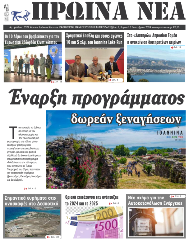 ΑρχικήTOP STORIES TOP STORIESΗΠΕΙΡΟΣ Τα πρωτοσέλιδα των γιαννιώτικων εφημερίδων 07.09.2024 0 FacebookTwitterWhatsAppEmailΤυπώνωViber Διαβάστε στα πρωτοσέλιδα των γιαννιώτικων εφημερίδων 7-8 Σεπτεμβρίου TagsΓΙΑΝΝΙΩΤΙΚΕΣ ΕΦΗΜΕΡΙΔΕΣΠΡΩΤΟΣΕΛΙΔΑ FacebookTwitterWhatsAppEmailΤυπώνωViber Προηγούμενο άρθροΟριακή επιτάχυνση της ανάπτυξης το 2024 και το 2025Επόμενο άρθροΣυνελήφθη διωκόμενος αλλοδαπός στην Κακαβιά ΣΧΕΤΙΚΑ ΑΡΘΡΑ Τα πρωτοσέλιδα των γιαννιώτικων εφημερίδων TOP STORIES 29.11.2025 Τα πρωτοσέλιδα των γιαννιώτικων εφημερίδων ΗΠΕΙΡΟΣ 28.11.2025 Τα πρωτοσέλιδα των γιαννιώτικων εφημερίδων ΗΠΕΙΡΟΣ 27.11.2025 Τα πρωτοσέλιδα των γιαννιώτικων εφημερίδων ΗΠΕΙΡΟΣ 26.11.2025 Τα πρωτοσέλιδα των γιαννιώτικων εφημερίδων ΗΠΕΙΡΟΣ 25.11.2025 Τα πρωτοσέλιδα των γιαννιώτικων εφημερίδων ΗΠΕΙΡΟΣ 22.11.2025 ΣΤΗΝ ΙΔΙΑ ΚΑΤΗΓΟΡΙΑ Στο Προεδρικό Μέγαρο η ομάδα I-GEM Ioannina ΗΠΕΙΡΟΣ 29.11.2025 Σχέδιο για Παιδοψυχιατρική Κλινική στα Ιωάννινα ΗΠΕΙΡΟΣ 29.11.2025 Τα προβλήματα να γίνουν αφορμή για βελτίωση ΗΠΕΙΡΟΣ 29.11.2025 Μαζική διαμαρτυρία για την κεραία δίπλα στο σχολείο ΗΠΕΙΡΟΣ 29.11.2025 Κοινή ευθύνη η ανθεκτικότητα των πόλεων ΗΠΕΙΡΟΣ 29.11.2025 Τα πρωτοσέλιδα των γιαννιώτικων εφημερίδων TOP STORIES 29.11.2025 ΜΗ ΧΑΣΕΤΕ Στο Προεδρικό Μέγαρο η ομάδα I-GEM Ioannina Σχέδιο για Παιδοψυχιατρική Κλινική στα Ιωάννινα Τα προβλήματα να γίνουν αφορμή για βελτίωση Μαζική διαμαρτυρία για την κεραία δίπλα στο σχολείο Κοινή ευθύνη η ανθεκτικότητα των πόλεων ΔΗΜΟΦΙΛΗ Κοινή ευθύνη η ανθεκτικότητα των πόλεων 15 Δεκεμβρίου οι εξετάσεις για άδεια φαρμακοποιού Τα του Καίσαρος… Προμήθεια εξοπλισμού σε εκπαιδευτικές δομές της Ηπείρου Στο Προεδρικό Μέγαρο η ομάδα I-GEM Ioannina