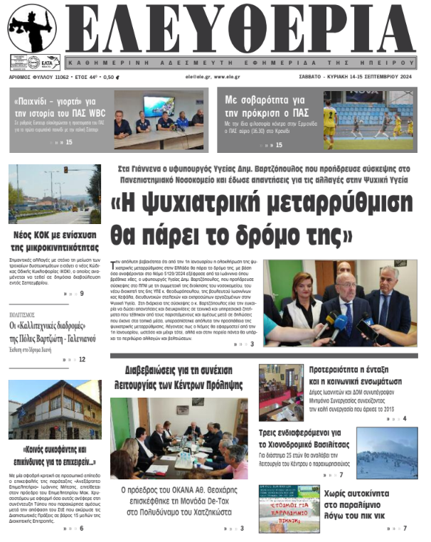 Διαβάστε στα πρωτοσέλιδα των γιαννιώτικων εφημερίδων 14-15 Σεπτεμβρίου
