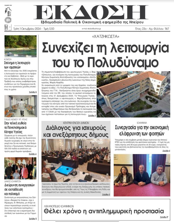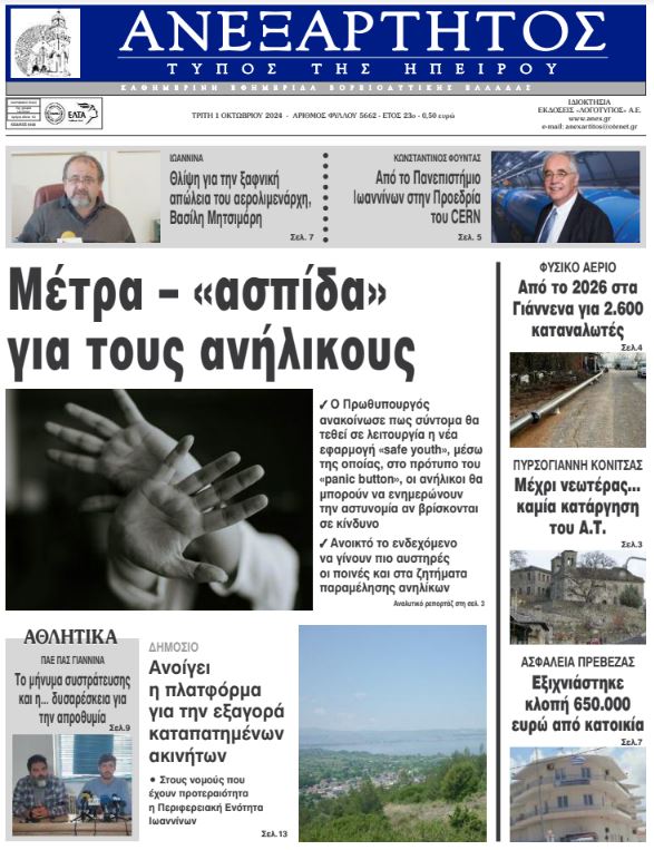 Διαβάστε στα πρωτοσέλιδα των γιαννιώτικων εφημερίδων της Τρίτης 1 Οκτωβρίου