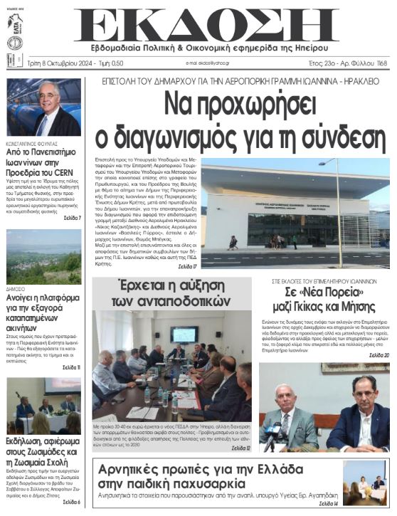 Διαβάστε στα πρωτοσέλιδα των γιαννιώτικων εφημερίδων της Τρίτης 8 Οκτωβρίου