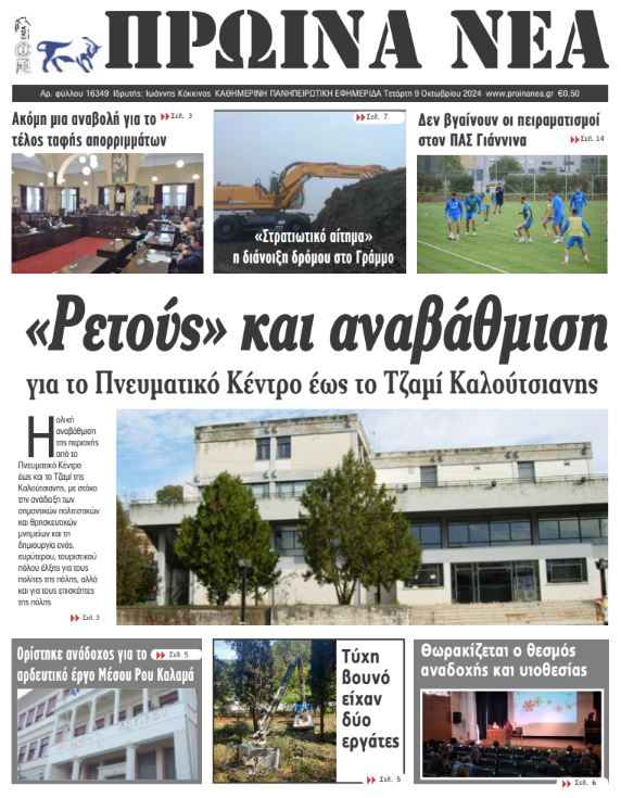 ΑρχικήΕΙΔΗΣΕΙΣΗΠΕΙΡΟΣ ΗΠΕΙΡΟΣ Τα πρωτοσέλιδα των γιαννιώτικων εφημερίδων 09.10.2024 0 FacebookTwitterWhatsAppEmailΤυπώνωViber Διαβάστε στα πρωτοσέλιδα των γιαννιώτικων εφημερίδων της Τετάρτης 9 Οκτωβρίου TagsΓΙΑΝΝΙΩΤΙΚΕΣ ΕΦΗΜΕΡΙΔΕΣΠΡΩΤΟΣΕΛΙΔΑ FacebookTwitterWhatsAppEmailΤυπώνωViber Προηγούμενο άρθροΠαράταση στη σύμβαση για την αποκομιδή απορριμμάτωνΕπόμενο άρθροΑναζητείται λύση για την ανάπλαση μίας συνοικίας ΣΧΕΤΙΚΑ ΑΡΘΡΑ Τα πρωτοσέλιδα των γιαννιώτικων εφημερίδων TOP STORIES 11.11.2025 Τα πρωτοσέλιδα των γιαννιώτικων εφημερίδων TOP STORIES 08.11.2025 Τα πρωτοσέλιδα των γιαννιώτικων εφημερίδων ΗΠΕΙΡΟΣ 07.11.2025 Τα πρωτοσέλιδα των γιαννιώτικων εφημερίδων ΗΠΕΙΡΟΣ 06.11.2025 Τα πρωτοσέλιδα των γιαννιώτικων εφημερίδων ΗΠΕΙΡΟΣ 05.11.2025 Τα πρωτοσέλιδα των γιαννιώτικων εφημερίδων ΗΠΕΙΡΟΣ 04.11.2025 ΣΤΗΝ ΙΔΙΑ ΚΑΤΗΓΟΡΙΑ Σε αυξημένη ετοιμότητα η Ήπειρος για τη γρίπη των πτηνών ΗΠΕΙΡΟΣ 11.11.2025 Πρωτιά για τον Δήμο Βορείων Τζουμέρκων στη διαχείριση υδάτων ΗΠΕΙΡΟΣ 11.11.2025 Δωρεά ζωής από ασθενή στο ΠΓΝΙ TOP STORIES 11.11.2025 Νέες αντιδράσεις για τις παρεμβάσεις στο Γράμμο ΗΠΕΙΡΟΣ 11.11.2025 Πίεση για τα 5 εκατ. ευρώ του πρώην Κλειστού Ξιφασκίας ΗΠΕΙΡΟΣ 11.11.2025 Τα πρωτοσέλιδα των γιαννιώτικων εφημερίδων TOP STORIES 11.11.2025 ΜΗ ΧΑΣΕΤΕ Επίδομα θέρμανσης: Νέες οδηγίες της ΑΑΔΕ Σε αυξημένη ετοιμότητα η Ήπειρος για τη γρίπη των πτηνών Δωρεά ζωής από ασθενή στο ΠΓΝΙ Νέες αντιδράσεις για τις παρεμβάσεις στο Γράμμο Πίεση για τα 5 εκατ. ευρώ του πρώην Κλειστού Ξιφασκίας ΔΗΜΟΦΙΛΗ Η αναπτυξιακή δυναμική της ελληνικής Χειροτεχνίας Πίεση για τα 5 εκατ. ευρώ του πρώην Κλειστού Ξιφασκίας Επίδομα παραμεθορίου στα στελέχη των Ενόπλων Δυνάμεων Νέες αντιδράσεις για τις παρεμβάσεις στο Γράμμο Επίδομα θέρμανσης: Νέες οδηγίες της ΑΑΔΕ