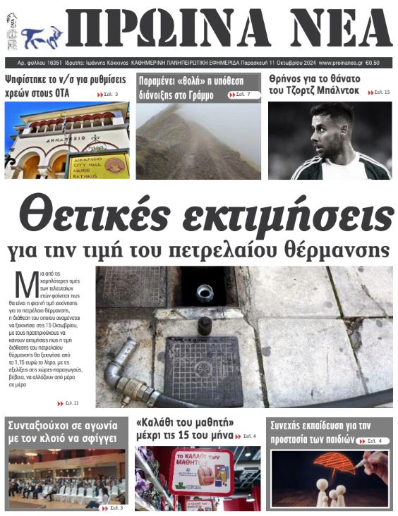Διαβάστε στα πρωτοσέλιδα των γιαννιώτικων εφημερίδων της Παρασκευής 11 Οκτωβρίου