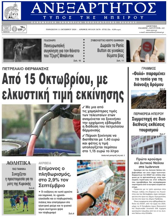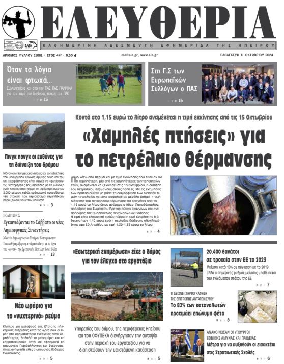 Διαβάστε στα πρωτοσέλιδα των γιαννιώτικων εφημερίδων της Παρασκευής 11 Οκτωβρίου