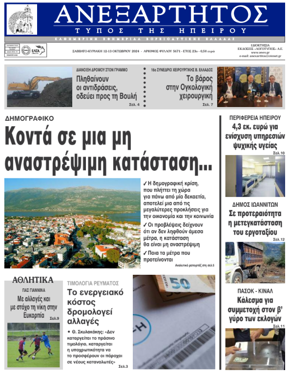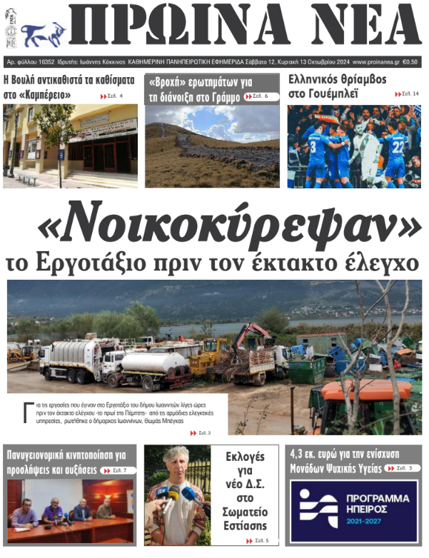 ΑρχικήΕΙΔΗΣΕΙΣΗΠΕΙΡΟΣ ΗΠΕΙΡΟΣ Τα πρωτοσέλιδα των γιαννιώτικων εφημερίδων 12.10.2024 0 FacebookTwitterWhatsAppEmailΤυπώνωViber Διαβάστε στα πρωτοσέλιδα των γιαννιώτικων εφημερίδων 12-13 Οκτωβρίου TagsΓΙΑΝΝΙΩΤΙΚΕΣ ΕΦΗΜΕΡΙΔΕΣΠΡΩΤΟΣΕΛΙΔΑ FacebookTwitterWhatsAppEmailΤυπώνωViber Προηγούμενο άρθροΤα του Καίσαρος…Επόμενο άρθροΑΥΞΗΣΗ 75,7% ΤΟΝ ΣΕΠΤΕΜΒΡΙΟ -Πάτησε «γκάζι» ο εξωδικαστικός ΣΧΕΤΙΚΑ ΑΡΘΡΑ Τα πρωτοσέλιδα των γιαννιώτικων εφημερίδων TOP STORIES 05.11.2025 Τα πρωτοσέλιδα των γιαννιώτικων εφημερίδων ΗΠΕΙΡΟΣ 04.11.2025 Τα πρωτοσέλιδα των γιαννιώτικων εφημερίδων TOP STORIES 01.11.2025 Τα πρωτοσέλιδα των γιαννιώτικων εφημερίδων ΗΠΕΙΡΟΣ 31.10.2025 Τα πρωτοσέλιδα των γιαννιώτικων εφημερίδων ΗΠΕΙΡΟΣ 30.10.2025 Τα πρωτοσέλιδα των γιαννιώτικων εφημερίδων ΗΠΕΙΡΟΣ 28.10.2025 ΣΤΗΝ ΙΔΙΑ ΚΑΤΗΓΟΡΙΑ Οι κάτοικοι του Μετσόβου λένε «όχι» στο λουκέτο του ταχυδρομείου ΗΠΕΙΡΟΣ 05.11.2025 Διεθνές ενδιαφέρον για την κινητοποίηση κατά του λουκέτου στα ΕΛΤΑ Πραμάντων ΗΠΕΙΡΟΣ 05.11.2025 Στα όριά του το ΠΓΝΙ με σχεδόν 500.000 ασθενείς μέσα στο 2025 ΗΠΕΙΡΟΣ 05.11.2025 Τα πρωτοσέλιδα των γιαννιώτικων εφημερίδων TOP STORIES 05.11.2025 Για «συντήρηση» του δρόμου στο Γράμμο τα ερπυστριοφόρα του Στρατού ΗΠΕΙΡΟΣ 04.11.2025 Η ΠΕΝΤΕ Α.Ε. απαντά στις καταγγελίες και υπερασπίζεται τη διαφάνεια στη συμφωνία με την «ΠΑΠΑΓΕΩΡΓΙΟΥ» ΗΠΕΙΡΟΣ 04.11.2025 ΜΗ ΧΑΣΕΤΕ Στα όριά του το ΠΓΝΙ με σχεδόν 500.000 ασθενείς μέσα στο 2025 Παραίτηση Σκλήκα μετά τη σφοδρή αντίδραση των βουλευτών Πολιτικές εξελίξεις και προσυνεδριακός διάλογος Τα πρωτοσέλιδα των γιαννιώτικων εφημερίδων Για «συντήρηση» του δρόμου στο Γράμμο τα ερπυστριοφόρα του Στρατού ΔΗΜΟΦΙΛΗ Οι κάτοικοι του Μετσόβου λένε «όχι» στο λουκέτο του ταχυδρομείου Τα πρωτοσέλιδα των γιαννιώτικων εφημερίδων Βορίζια: Στον εισαγγελέα τα τρία αδέλφια Τα του Καίσαρος… Παραίτηση Σκλήκα μετά τη σφοδρή αντίδραση των βουλευτών
