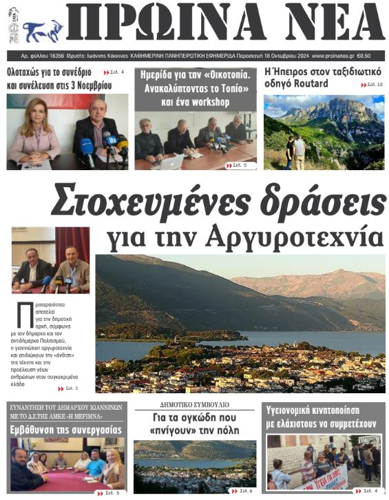 Διαβάστε στα πρωτοσέλιδα των γιαννιώτικων εφημερίδων της Παρασκευής 18 Οκτωβρίου