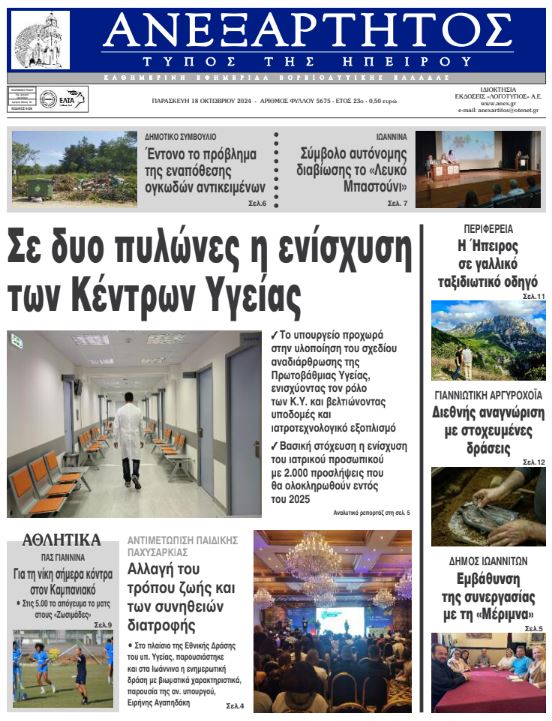 Διαβάστε στα πρωτοσέλιδα των γιαννιώτικων εφημερίδων της Παρασκευής 18 Οκτωβρίου