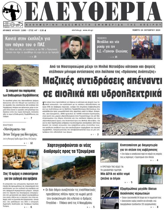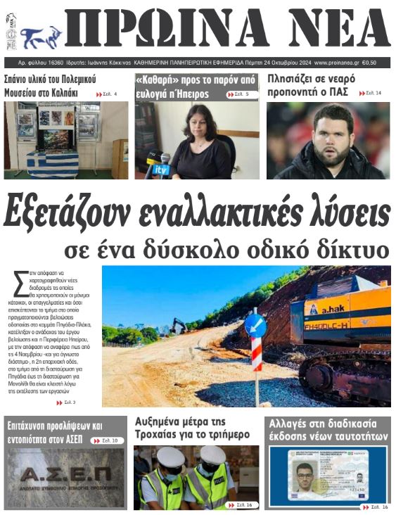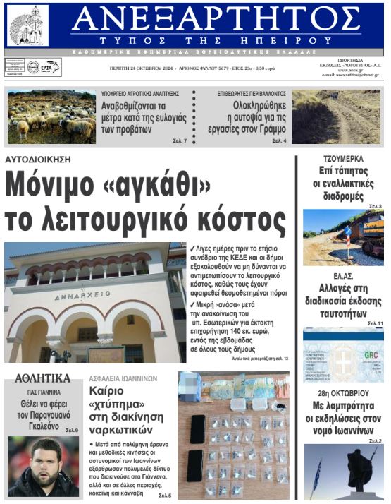Διαβάστε στα πρωτοσέλιδα των γιαννιώτικων εφημερίδων της Πέμπτης 24 Οκτωβρίου