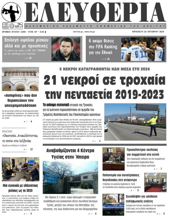 Διαβάστε στα πρωτοσέλιδα των γιαννιώτικων εφημερίδων της Παρασκευής 25 Οκτωβρίου