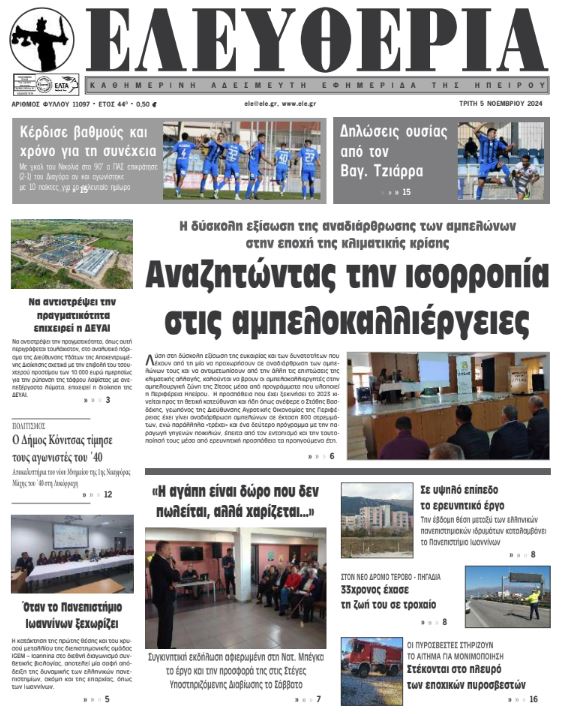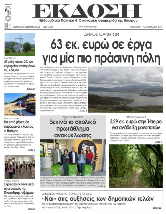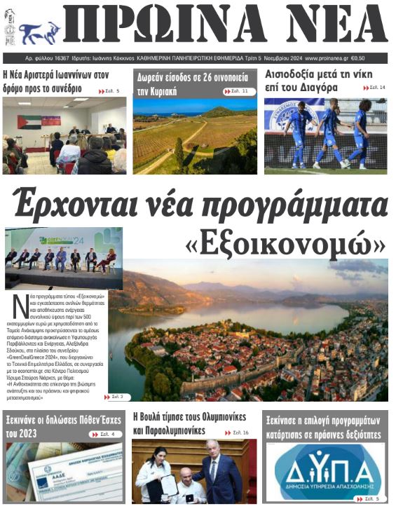 ΑρχικήΕΙΔΗΣΕΙΣΗΠΕΙΡΟΣ ΗΠΕΙΡΟΣ Τα πρωτοσέλιδα των γιαννιώτικων εφημερίδων 05.11.2024 0 FacebookTwitterWhatsAppEmailΤυπώνωViber Διαβάστε στα πρωτοσέλιδα των γιαννιώτικων εφημερίδων της Τρίτης 5 Νοεμβρίου TagsΓΙΑΝΝΙΩΤΙΚΕΣ ΕΦΗΜΕΡΙΔΕΣΠΡΩΤΟΣΕΛΙΔΑ FacebookTwitterWhatsAppEmailΤυπώνωViber Προηγούμενο άρθροΑμερικανικές εκλογές: Όλα όσα πρέπει να γνωρίζουμεΕπόμενο άρθροΝα αντιστρέψει την πραγματικότητα επιχειρεί η ΔΕΥΑΙ ΣΧΕΤΙΚΑ ΑΡΘΡΑ Τα πρωτοσέλιδα των γιαννιώτικων εφημερίδων TOP STORIES 02.12.2025 Τα πρωτοσέλιδα των γιαννιώτικων εφημερίδων ΗΠΕΙΡΟΣ 29.11.2025 Τα πρωτοσέλιδα των γιαννιώτικων εφημερίδων ΗΠΕΙΡΟΣ 28.11.2025 Τα πρωτοσέλιδα των γιαννιώτικων εφημερίδων ΗΠΕΙΡΟΣ 27.11.2025 Τα πρωτοσέλιδα των γιαννιώτικων εφημερίδων ΗΠΕΙΡΟΣ 26.11.2025 Τα πρωτοσέλιδα των γιαννιώτικων εφημερίδων ΗΠΕΙΡΟΣ 25.11.2025 ΣΤΗΝ ΙΔΙΑ ΚΑΤΗΓΟΡΙΑ «Θα κάνουμε Χριστούγεννα στα μπλόκα» λένε οι αγρότες ΗΠΕΙΡΟΣ 02.12.2025 Μεγάλες ζημιές από πυρκαγιά σε διαμέρισμα στους Αμπελόκηπους ΗΠΕΙΡΟΣ 02.12.2025 Αυτοψία Τσίμαρη στις πληγείσες περιοχές των Τζουμέρκων ΗΠΕΙΡΟΣ 02.12.2025 Στα Ιωάννινα το 1ο Πολυθεματικό Επιστημονικό Συνέδριο ΟΤΑ ΗΠΕΙΡΟΣ 02.12.2025 800.000 ευρώ για το οδικό δίκτυο Καρδαμιτσίων και Νέας Ζωής ΗΠΕΙΡΟΣ 02.12.2025 Φωτιά σε πολυκατοικία στους Αμπελόκηπους ΗΠΕΙΡΟΣ 02.12.2025 ΜΗ ΧΑΣΕΤΕ «Θα κάνουμε Χριστούγεννα στα μπλόκα» λένε οι αγρότες Μεγάλες ζημιές από πυρκαγιά σε διαμέρισμα στους Αμπελόκηπους 800.000 ευρώ για το οδικό δίκτυο Καρδαμιτσίων και Νέας Ζωής Απολογισμός Οδικής Ασφάλειας για τον Νοέμβριο στην Ήπειρο Δώρο Χριστουγέννων: Γιατί φέτος θα δοθεί νωρίτερα και πώς υπολογίζεται ΔΗΜΟΦΙΛΗ Χρηματιστήριο Αθηνών: Ανοδικές τάσεις παρά τη διεθνή διστακτικότητα Αυξημένο πληθωρισμό στο 2,2% διαπιστώνει η Eurostat, στην Ευρωζώνη Τα του Καίσαρος… Σουμάτρα: Τουλάχιστον 631 νεκροί και 1 εκατ. εκτοπισμένοι Επιστροφή ενοικίου: Δυνατότητα ενημέρωσης των δικαιούχων μέσω της γραμμής 1521