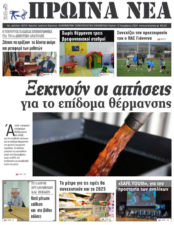 Διαβάστε στα πρωτοσέλιδα των γιαννιώτικων εφημερίδων της Πέμπτης 14 Νοεμβρίου