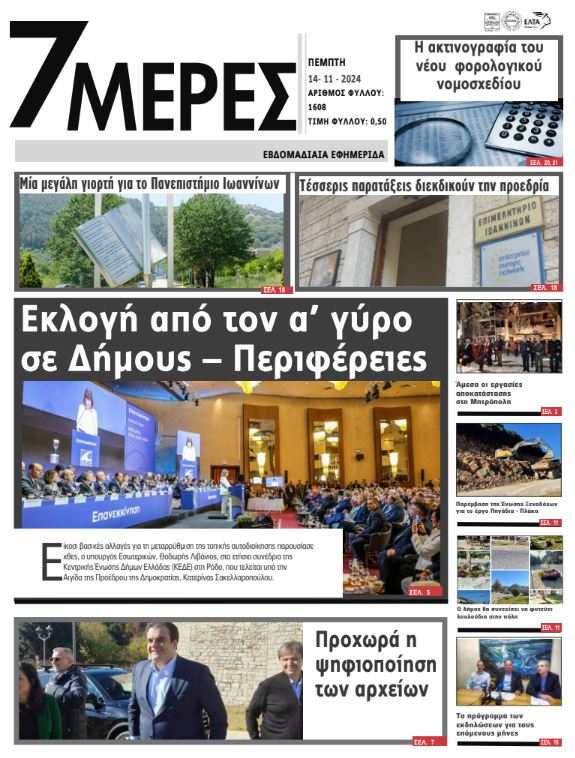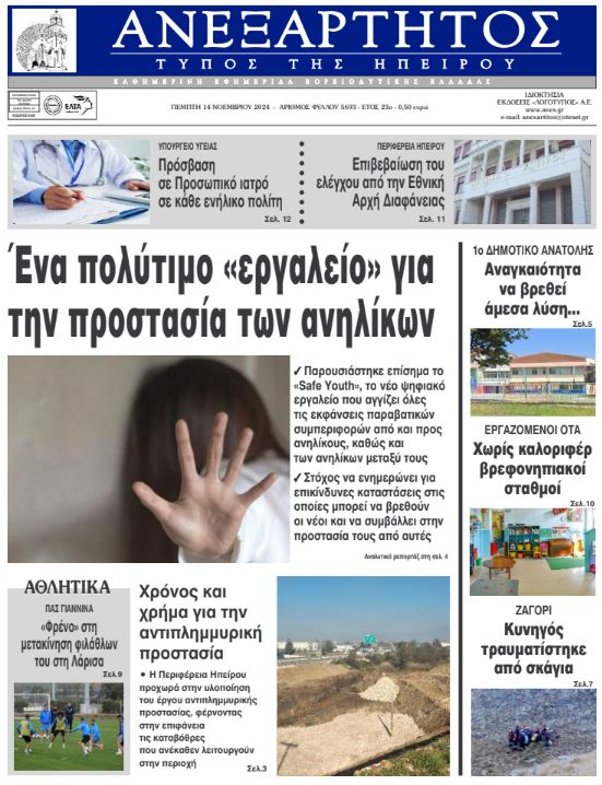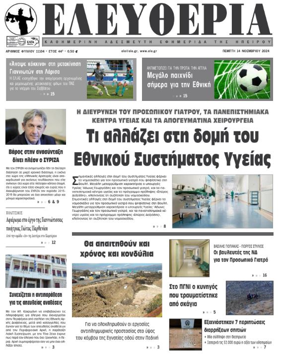 Διαβάστε στα πρωτοσέλιδα των γιαννιώτικων εφημερίδων της Πέμπτης 14 Νοεμβρίου
