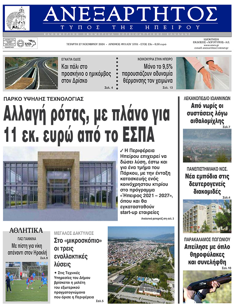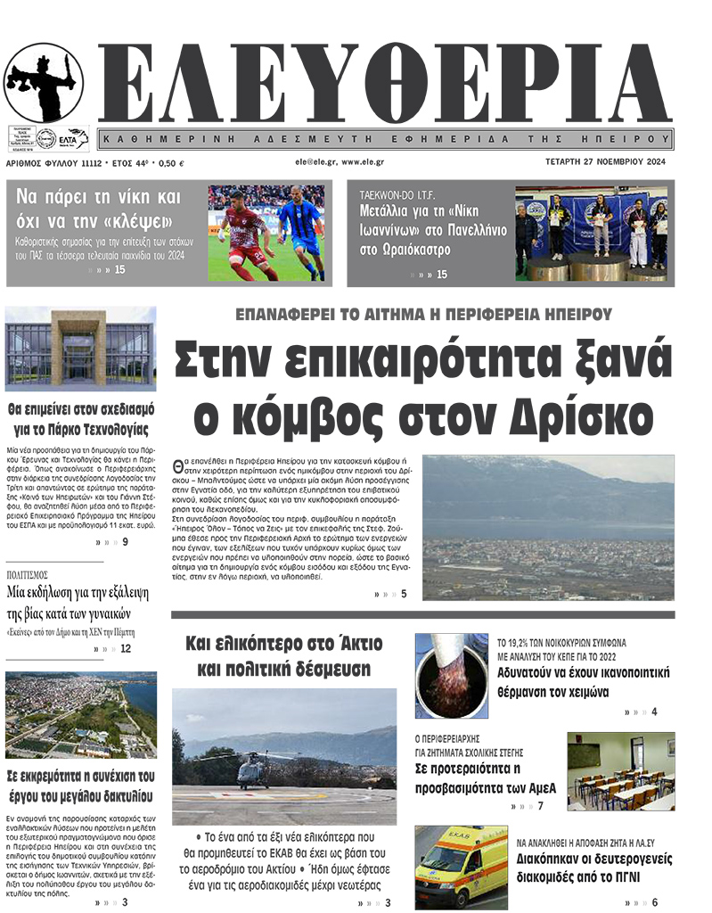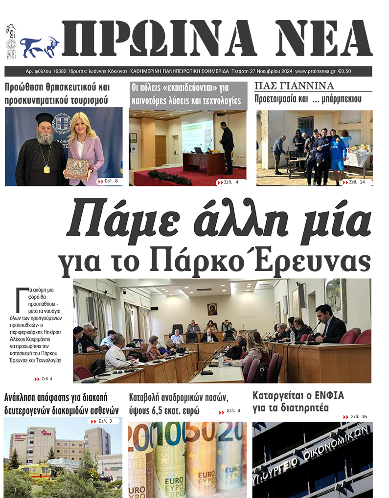 Διαβάστε στα πρωτοσέλιδα των γιαννιώτικων εφημερίδων της Τετάρτης 27 Νοεμβρίου