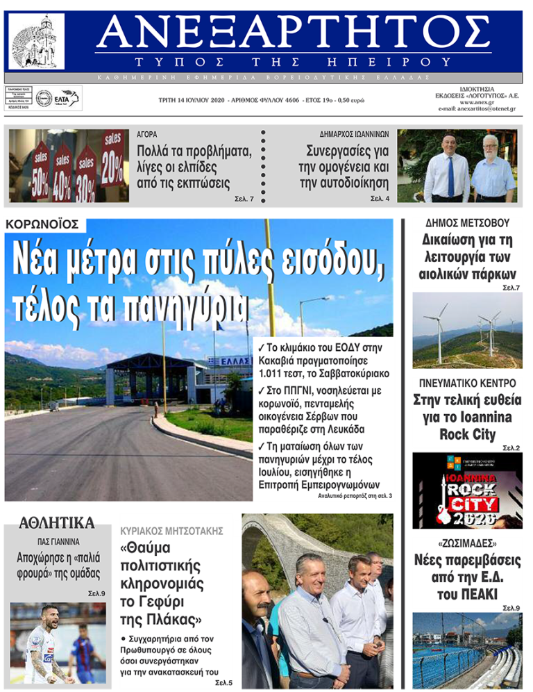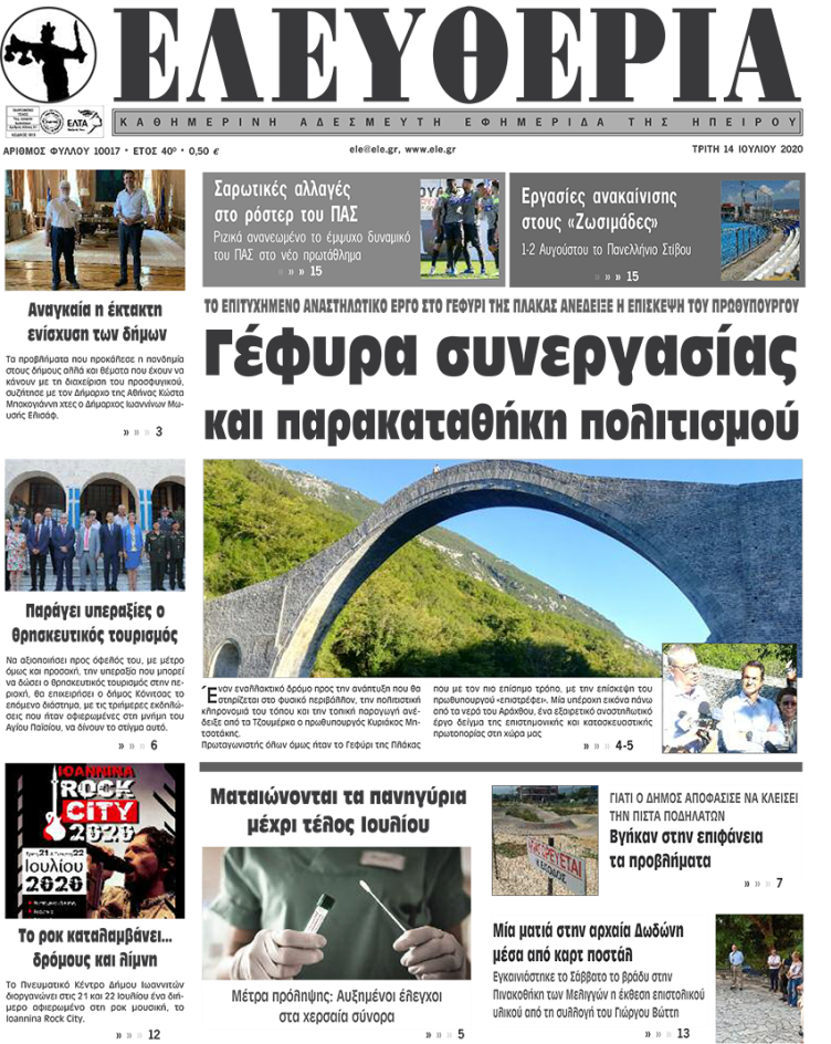 ΑρχικήΕΙΔΗΣΕΙΣΗΠΕΙΡΟΣ ΗΠΕΙΡΟΣ Τα πρωτοσέλιδα των γιαννιώτικων εφημερίδων 14.07.2020 184 FacebookTwitterWhatsAppEmailΤυπώνωViber Διαβάστε στα πρωτοσέλιδα των γιαννιώτικων εφημερίδων σήμερα Τρίτη 14 Ιουλίου. TagsΓΙΑΝΝΙΩΤΙΚΕΣ ΕΦΗΜΕΡΙΔΕΣΠΡΩΤΟΣΕΛΙΔΑ FacebookTwitterWhatsAppEmailΤυπώνωViber Προηγούμενο άρθροΔεύτερο κρούσμα κορωνοϊού στην ΆρταΕπόμενο άρθροΦωτοβολταϊκό σύστημα προσφέρει «Ενέργεια για Ζωή» ΣΧΕΤΙΚΑ ΑΡΘΡΑ Τα πρωτοσέλιδα των γιαννιώτικων εφημερίδων TOP STORIES 15.11.2025 Τα πρωτοσέλιδα των γιαννιώτικων εφημερίδων ΗΠΕΙΡΟΣ 14.11.2025 Τα πρωτοσέλιδα των γιαννιώτικων εφημερίδων ΗΠΕΙΡΟΣ 13.11.2025 Τα πρωτοσέλιδα των γιαννιώτικων εφημερίδων ΗΠΕΙΡΟΣ 12.11.2025 Τα πρωτοσέλιδα των γιαννιώτικων εφημερίδων ΗΠΕΙΡΟΣ 11.11.2025 Τα πρωτοσέλιδα των γιαννιώτικων εφημερίδων TOP STORIES 08.11.2025 ΣΤΗΝ ΙΔΙΑ ΚΑΤΗΓΟΡΙΑ Ένας ζωντανός καθρέφτης της παράδοσης με βλέμμα στο μέλλον ΗΠΕΙΡΟΣ 15.11.2025 Μαθηματική έρευνα και κριτική σκέψη στην εποχή της Τεχνητής Νοημοσύνης ΗΠΕΙΡΟΣ 15.11.2025 Τα πρωτοσέλιδα των γιαννιώτικων εφημερίδων TOP STORIES 15.11.2025 ΑΠΟ ΤΗΝ ΠΕΡΙΦΕΡΕΙΑ -Συστάσεις λόγω υψηλών συγκεντρώσεων αιωρούμενων σωματιδίων ΗΠΕΙΡΟΣ 15.11.2025 Εκλογή του Παναγιώτη Σουκάκου στην Ακαδημία Αθηνών ΗΠΕΙΡΟΣ 14.11.2025 Εντυπωσιακό το αποτέλεσμα της αναστήλωσης στο τζαμί Καλούτσανης ΗΠΕΙΡΟΣ 14.11.2025 ΜΗ ΧΑΣΕΤΕ Ένας ζωντανός καθρέφτης της παράδοσης με βλέμμα στο μέλλον Μαθηματική έρευνα και κριτική σκέψη στην εποχή της Τεχνητής Νοημοσύνης Τα πρωτοσέλιδα των γιαννιώτικων εφημερίδων Εντυπωσιακό το αποτέλεσμα της αναστήλωσης στο τζαμί Καλούτσανης Ενιαίο αστικό πάρκο στις παλιές στρατιωτικές φυλακές ΔΗΜΟΦΙΛΗ Σέρρες: Ποινές φυλάκισης στους 30 μετανάστες για τα επεισόδια σε δομή Ανακαλούνται οι δασμοί Τραμπ σε καφέ, κακάο και δεκάδες άλλα τρόφιμα Σε έναν γύρο οι τοπικές εκλογές Τα πρωτοσέλιδα των γιαννιώτικων εφημερίδων ΑΠΟ ΤΗΝ ΠΕΡΙΦΕΡΕΙΑ -Συστάσεις λόγω υψηλών συγκεντρώσεων αιωρούμενων σωματιδίων