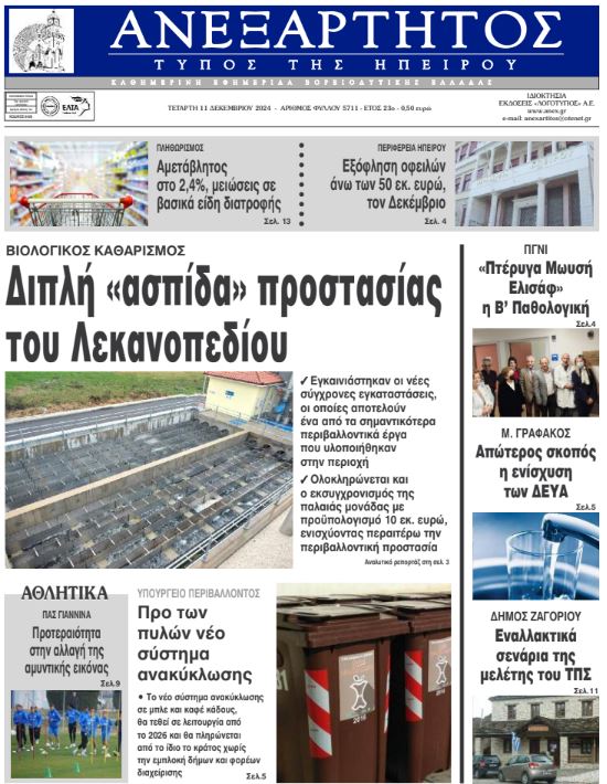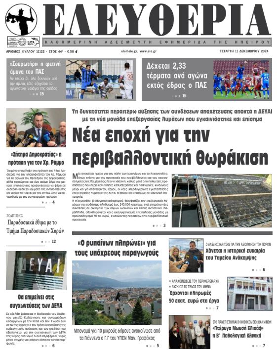 ΑρχικήΕΙΔΗΣΕΙΣΗΠΕΙΡΟΣ ΗΠΕΙΡΟΣ Τα πρωτοσέλιδα των γιαννιώτικων εφημερίδων 11.12.2024 0 FacebookTwitterWhatsAppEmailΤυπώνωViber Διαβάστε στα πρωτοσέλιδα των γιαννιώτικων εφημερίδων της Τετάρτης 11 Δεκεμβρίου TagsΓΙΑΝΝΙΩΤΙΚΕΣ ΕΦΗΜΕΡΙΔΕΣΠΡΩΤΟΣΕΛΙΔΑ FacebookTwitterWhatsAppEmailΤυπώνωViber Προηγούμενο άρθροΣουδάν: 100 νεκροί και εκατοντάδες τραυματίες από αεροπορική επιδρομήΕπόμενο άρθροΤα του Καίσαρος… ΣΧΕΤΙΚΑ ΑΡΘΡΑ Τα πρωτοσέλιδα των γιαννιώτικων εφημερίδων TOP STORIES 07.11.2025 Τα πρωτοσέλιδα των γιαννιώτικων εφημερίδων ΗΠΕΙΡΟΣ 06.11.2025 Τα πρωτοσέλιδα των γιαννιώτικων εφημερίδων ΗΠΕΙΡΟΣ 05.11.2025 Τα πρωτοσέλιδα των γιαννιώτικων εφημερίδων ΗΠΕΙΡΟΣ 04.11.2025 Τα πρωτοσέλιδα των γιαννιώτικων εφημερίδων TOP STORIES 01.11.2025 Τα πρωτοσέλιδα των γιαννιώτικων εφημερίδων ΗΠΕΙΡΟΣ 31.10.2025 ΣΤΗΝ ΙΔΙΑ ΚΑΤΗΓΟΡΙΑ Μαθητές του 5ου Γυμνασίου Ιωαννίνων στην κορυφή του Μιτσικελίου ΗΠΕΙΡΟΣ 07.11.2025 Επίτιμος Διδάκτορας του Τμήματος Φιλολογίας ο Γιώργος Κεχαγιόγλου ΗΠΕΙΡΟΣ 07.11.2025 Οι ναυαγοσωστικές δαπάνες «πνίγουν» τους δήμους ΗΠΕΙΡΟΣ 07.11.2025 Ενημερωτική ημερίδα στα Ιωάννινα για τη δωρεά και μεταμόσχευση οργάνων ΗΠΕΙΡΟΣ 07.11.2025 Εγκαίνια στο Κατάστημα Αναμνηστικών του Πανεπιστημίου Ιωαννίνων ΗΠΕΙΡΟΣ 07.11.2025 Εντοπίστηκε πεζοπόρος που είχε χάσει τον προσανατολισμό του στο Ανήλιο Μετσόβου ΗΠΕΙΡΟΣ 07.11.2025 ΜΗ ΧΑΣΕΤΕ Οι ναυαγοσωστικές δαπάνες «πνίγουν» τους δήμους Έκτακτο δελτίο επιδείνωσης από την ΕΜΥ – Πού θα βρέχει το επόμενο τριήμερο Μπαλωθιές τέλος στην Κρήτη – Τα μέτρα για την παράνομη οπλοκατοχή Χωρίς πινακίδες παραμένουν χιλιάδες δίκυκλα Ενστάσεις δικυκλιστών για τις θερμοπλαστικές διαβάσεις ΔΗΜΟΦΙΛΗ Εντοπίστηκε πεζοπόρος που είχε χάσει τον προσανατολισμό του στο Ανήλιο Μετσόβου Επίτιμος Διδάκτορας του Τμήματος Φιλολογίας ο Γιώργος Κεχαγιόγλου Καταθέτει στην εξεταστική για τον ΟΠΕΚΕΠΕ ο Μάκης Βορίδης Μητσοτάκης: Να σταματήσει η ροή ρωσικού αερίου μέσω Τουρκίας Μαθητές του 5ου Γυμνασίου Ιωαννίνων στην κορυφή του Μιτσικελίου
