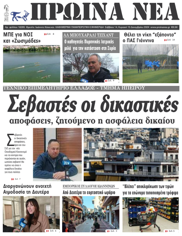 ΑρχικήΕΙΔΗΣΕΙΣΗΠΕΙΡΟΣ ΗΠΕΙΡΟΣ Τα πρωτοσέλιδα των γιαννιώτικων εφημερίδων 14.12.2024 0 FacebookTwitterWhatsAppEmailΤυπώνωViber Διαβάστε στα πρωτοσέλιδα των γιαννιώτικων εφημερίδων 14-15 Δεκεμβρίου TagsΓΙΑΝΝΙΩΤΙΚΕΣ ΕΦΗΜΕΡΙΔΕΣΠΡΩΤΟΣΕΛΙΔΑ FacebookTwitterWhatsAppEmailΤυπώνωViber Προηγούμενο άρθροΚαθολική εφαρμογή του IRIS εντός του 2025Επόμενο άρθροΤα του Καίσαρος… ΣΧΕΤΙΚΑ ΑΡΘΡΑ Τα πρωτοσέλιδα των γιαννιώτικων εφημερίδων ΗΠΕΙΡΟΣ 13.12.2025 Τα πρωτοσέλιδα των γιαννιώτικων εφημερίδων ΗΠΕΙΡΟΣ 12.12.2025 Τα πρωτοσέλιδα των γιαννιώτικων εφημερίδων ΗΠΕΙΡΟΣ 11.12.2025 Τα πρωτοσέλιδα των γιαννιώτικων εφημερίδων ΗΠΕΙΡΟΣ 10.12.2025 Τα πρωτοσέλιδα των γιαννιώτικων εφημερίδων ΗΠΕΙΡΟΣ 09.12.2025 Τα πρωτοσέλιδα των γιαννιώτικων εφημερίδων ΗΠΕΙΡΟΣ 06.12.2025 ΣΤΗΝ ΙΔΙΑ ΚΑΤΗΓΟΡΙΑ Σε γιορτινό κλίμα η φωταγώγηση του Χριστουγεννιάτικου Δέντρου ΗΠΕΙΡΟΣ 14.12.2025 Δ. ΑΡΤΑΙΩΝ -Αναγκαία προσαρμογή των δημοτικών τελών για το 2026 ΗΠΕΙΡΟΣ 13.12.2025 Προχωρά σε «λουκέτο» δημαρχείων η ΠΕΔ Ηπείρου – Σήμα κινδύνου για την αυτοδιοίκηση ΗΠΕΙΡΟΣ 13.12.2025 Δ. ΒΟΡΕΙΩΝ ΤΖΟΥΜΕΡΚΩΝ -Παρέμβαση για το θεσμικό πλαίσιο περί κοινωφελών περιουσιών και κληροδοτημάτων ΗΠΕΙΡΟΣ 13.12.2025 Τα πρωτοσέλιδα των γιαννιώτικων εφημερίδων ΗΠΕΙΡΟΣ 13.12.2025 Ζητούνται άμεσες λύσεις για την αιθαλομίχλη – Συνεχίζεται η σιωπή του ΥΠΕΝ ΗΠΕΙΡΟΣ 12.12.2025 ΜΗ ΧΑΣΕΤΕ Ποιοι συμμετέχουν στην 24ωρη πανελλαδική απεργία της Τρίτης Εθνικό πένθος στην Αυστραλία μετά την τρομοκρατική επίθεση στο Μποντάι Πληρωμές από τον e-ΕΦΚΑ και τη ΔΥΠΑ έως τις 19 Δεκεμβρίου Σαρωτικοί έλεγχοι επιστροφών ΦΠΑ από την ΑΑΔΕ Αγρότες: Κλιμάκωση μπλόκων και ανοιχτή πρόσκληση για διάλογο χωρίς τελεσίγραφα ΔΗΜΟΦΙΛΗ Σαρωτικοί έλεγχοι επιστροφών ΦΠΑ από την ΑΑΔΕ Στον εισαγγελέα οι 16 για το σκάνδαλο του ΟΠΕΚΕΠΕ Εθνικό πένθος στην Αυστραλία μετά την τρομοκρατική επίθεση στο Μποντάι Συνάντηση της Νέας Αριστεράς με εκπροσώπους των Οδοντιάτρων Δημόσιας Υγείας Πληρωμές από τον e-ΕΦΚΑ και τη ΔΥΠΑ έως τις 19 Δεκεμβρίου