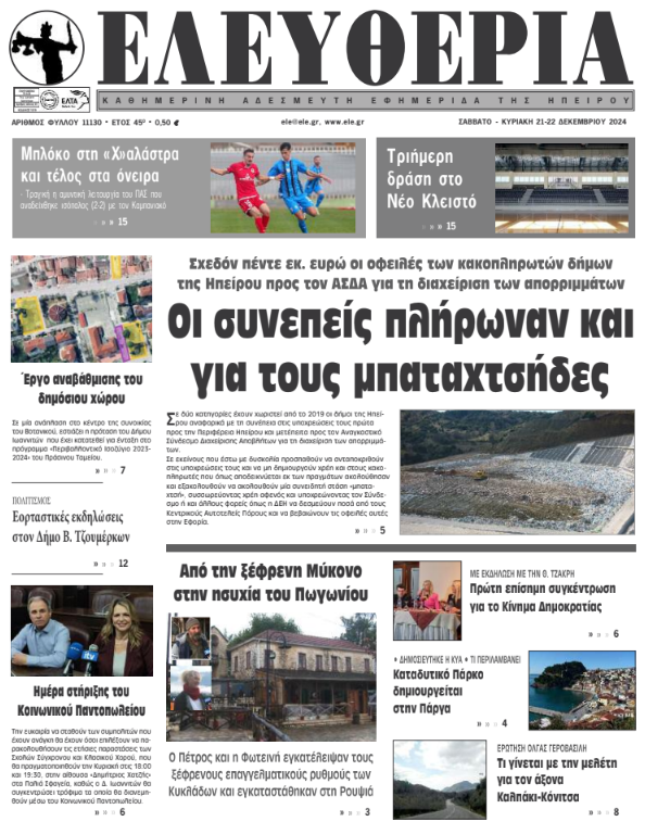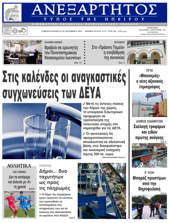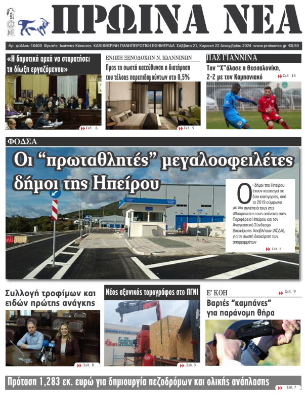 Διαβάστε στα πρωτοσέλιδα των γιαννιώτικων εφημερίδων 21-22 Δεκεμβρίου