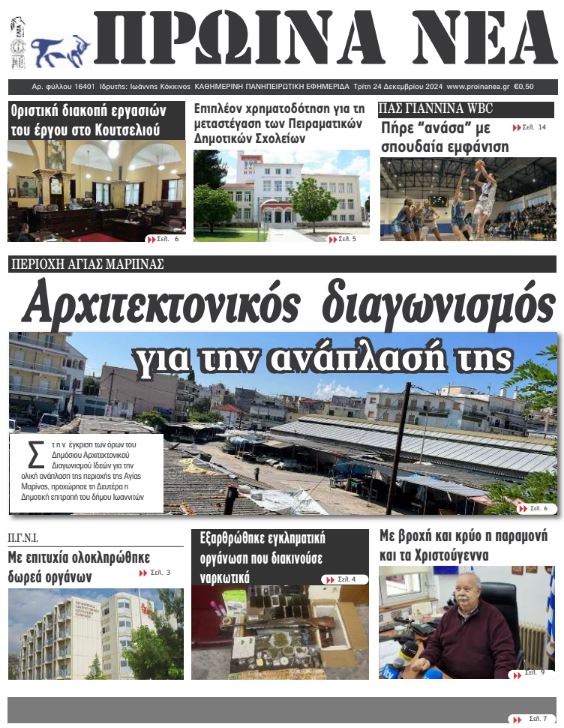 Διαβάστε στα πρωτοσέλιδα των γιαννιώτικων εφημερίδων της Τρίτης 24 Δεκεμβρίου