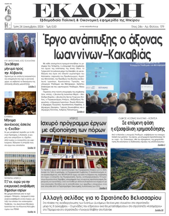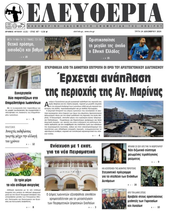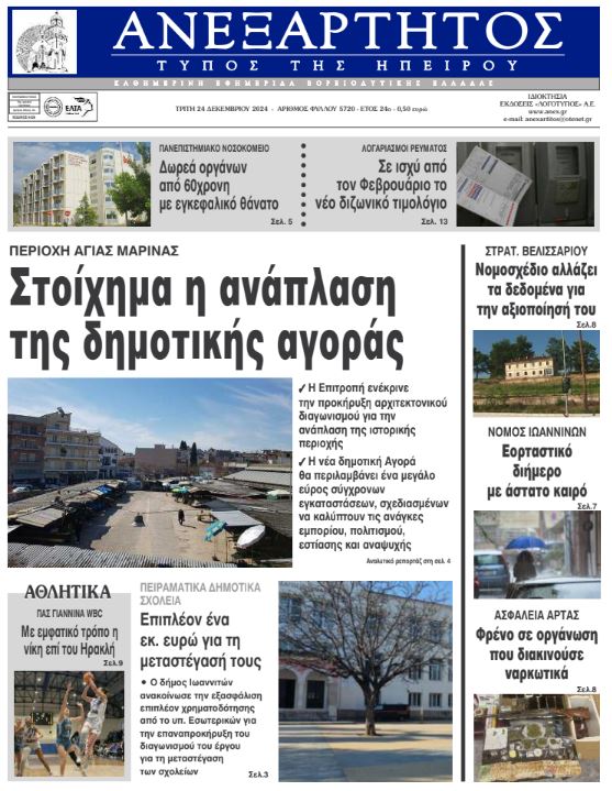 Διαβάστε στα πρωτοσέλιδα των γιαννιώτικων εφημερίδων της Τρίτης 24 Δεκεμβρίου