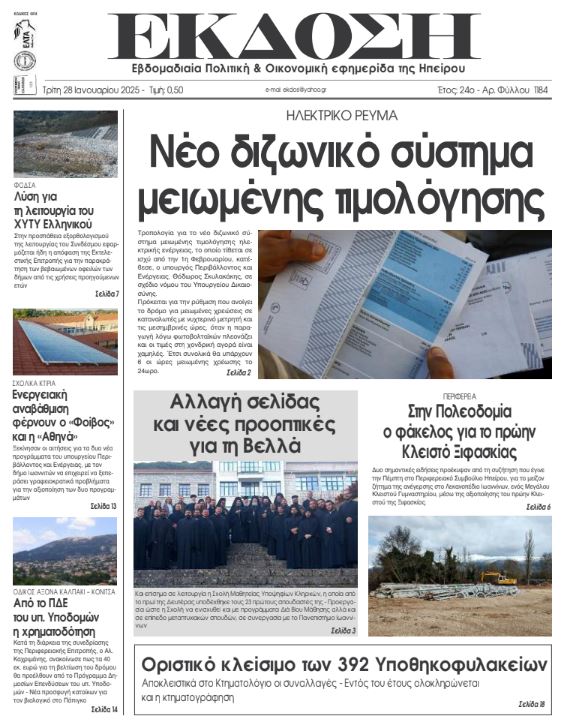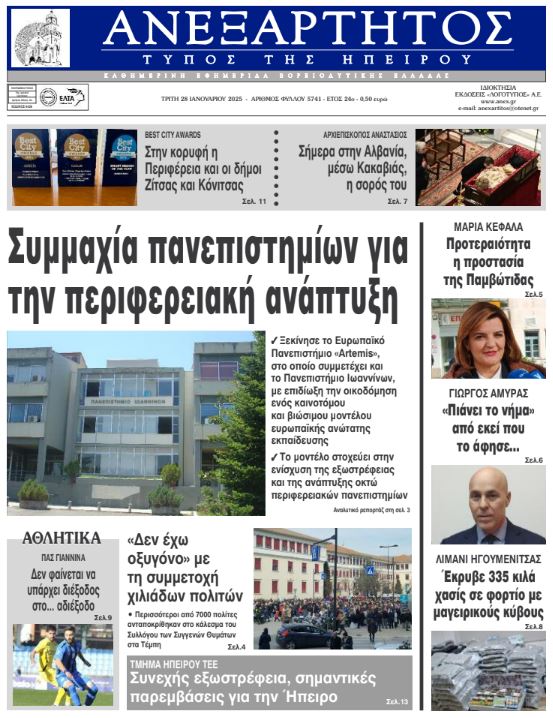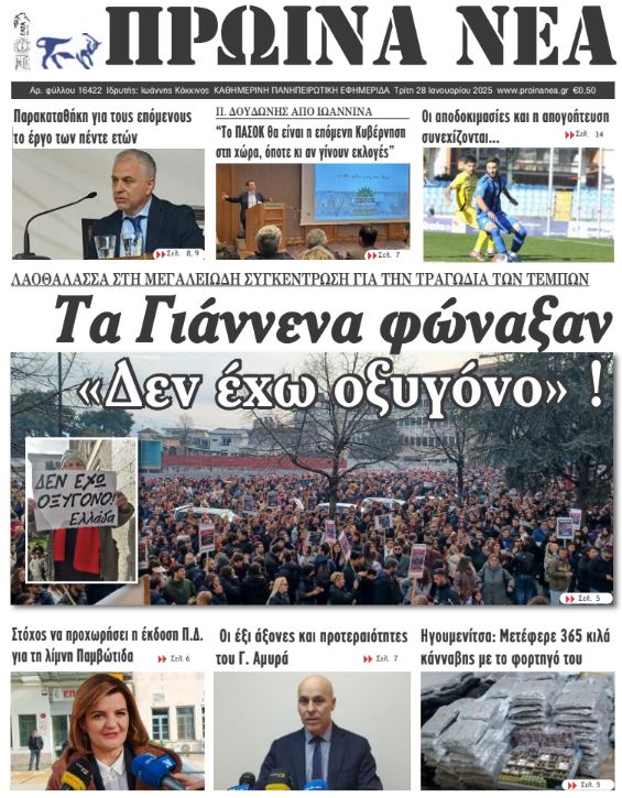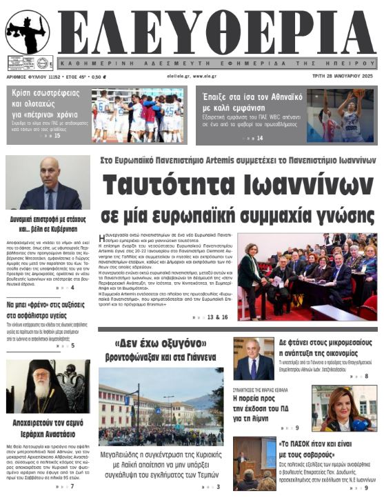 Διαβάστε στα πρωτοσέλιδα των γιαννιώτικων εφημερίδων της Τρίτης 28 Ιανουαρίου 2025