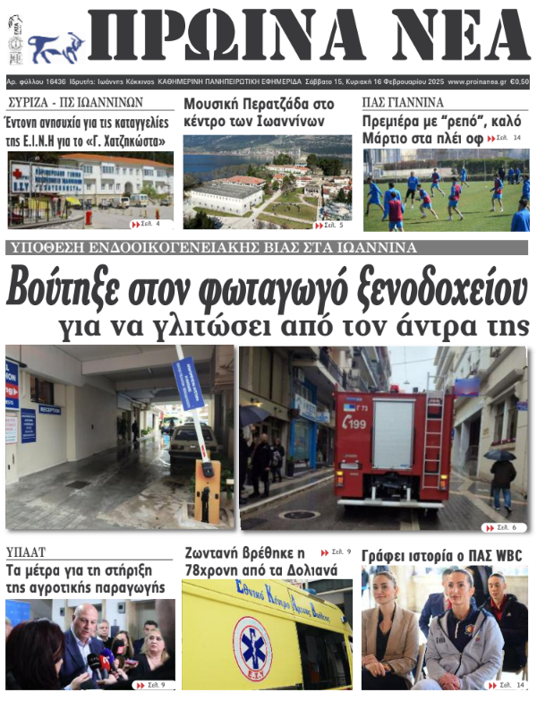 Διαβάστε στα πρωτοσέλιδα των γιαννιώτικων εφημερίδων 15-16 Φεβρουαρίου 2025