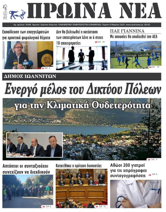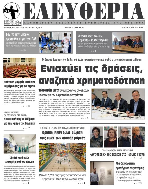Διαβάστε στα πρωτοσέλιδα των γιαννιώτικων εφημερίδων της Πέμπτης 6 Μαρτίου 2025