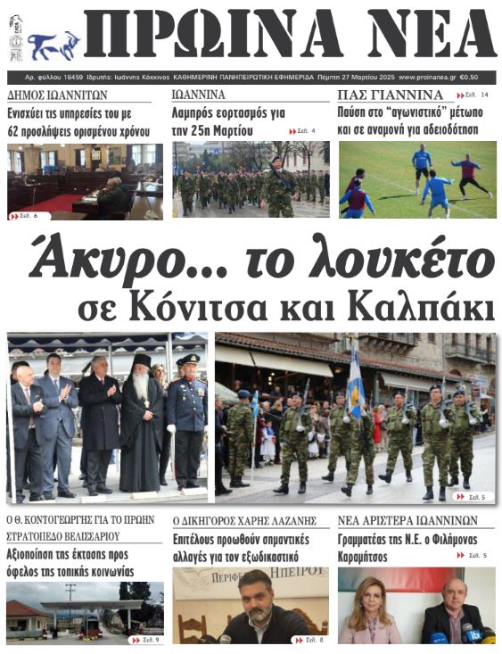 Διαβάστε στα πρωτοσέλιδα των γιαννιώτικων εφημερίδων της Πέμπτης 27 Μαρτίου 2025