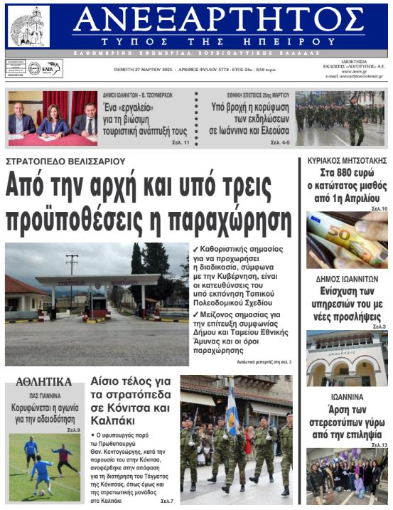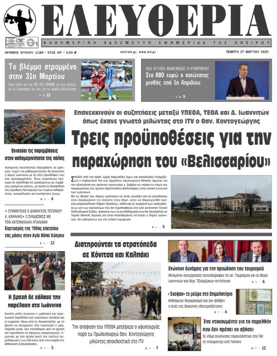 Διαβάστε στα πρωτοσέλιδα των γιαννιώτικων εφημερίδων της Πέμπτης 27 Μαρτίου 2025
