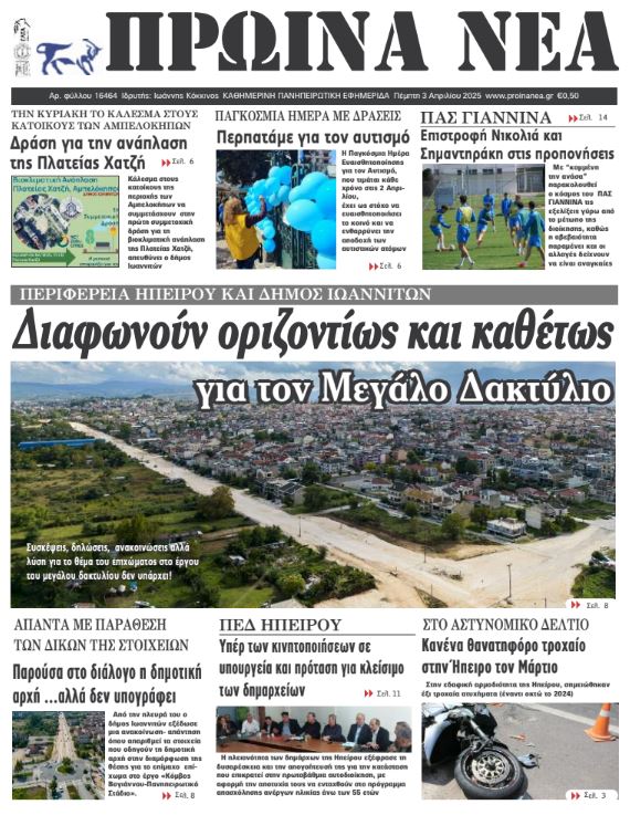 Διαβάστε στα πρωτοσέλιδα των γιαννιώτικων εφημερίδων της Πέμπτης 3 Απριλίου 2025