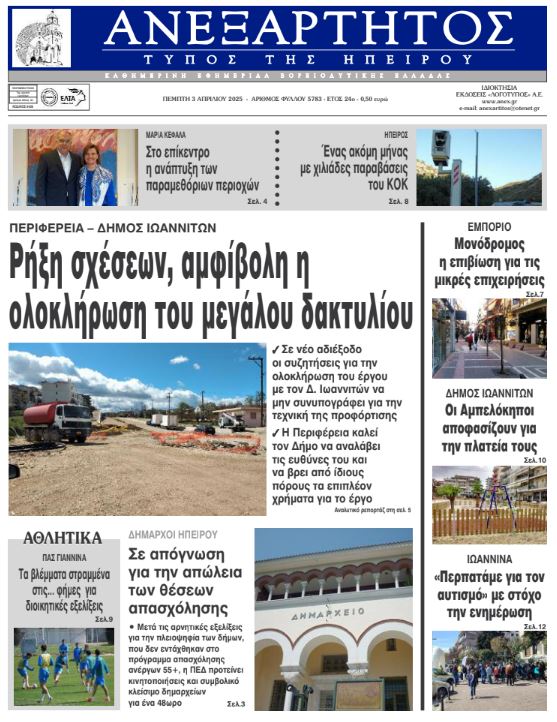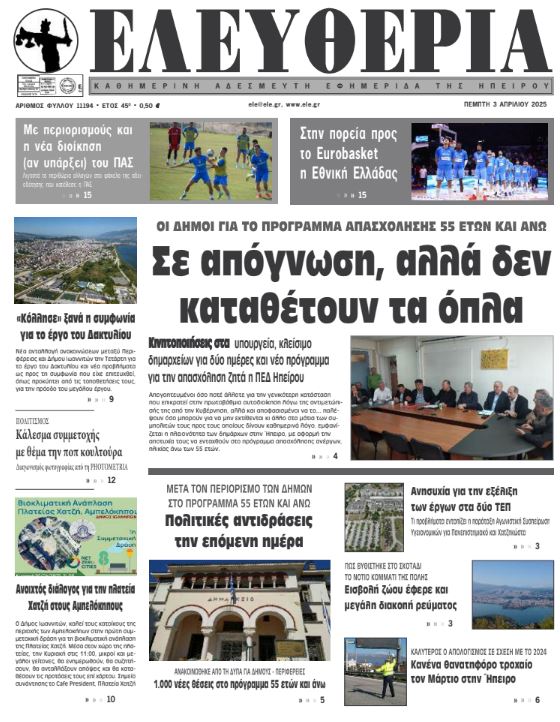 Διαβάστε στα πρωτοσέλιδα των γιαννιώτικων εφημερίδων της Πέμπτης 3 Απριλίου 2025