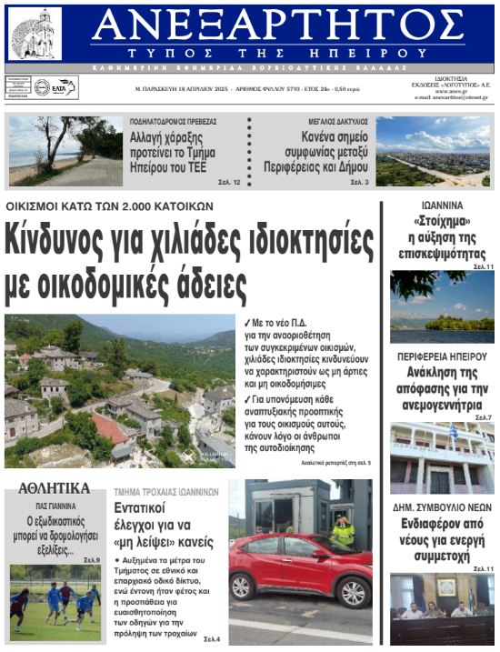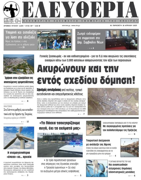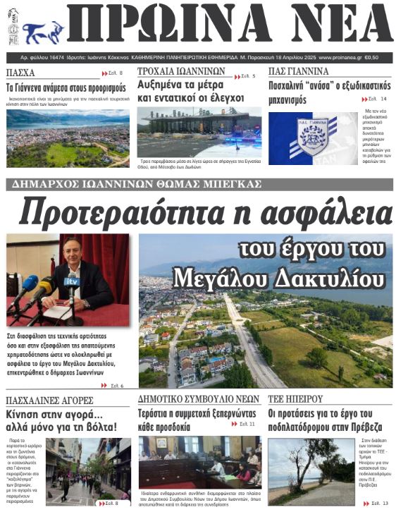 Διαβάστε στα πρωτοσέλιδα των γιαννιώτικων εφημερίδων Μ. Παρασκευή 18 Απριλίου 2025