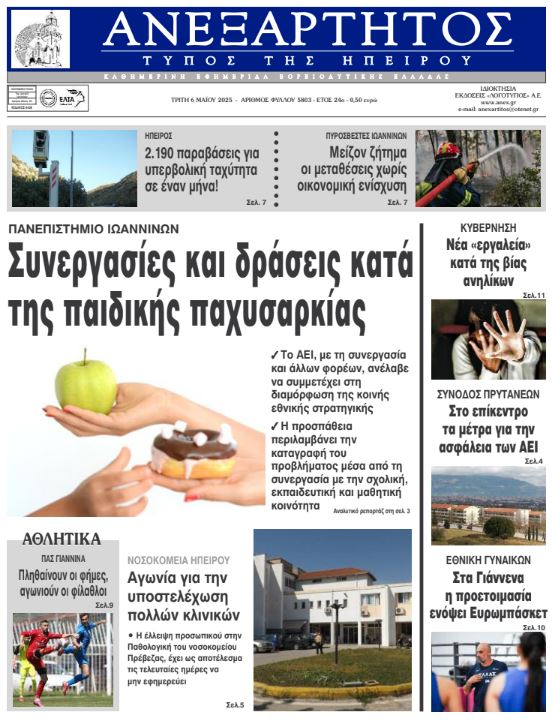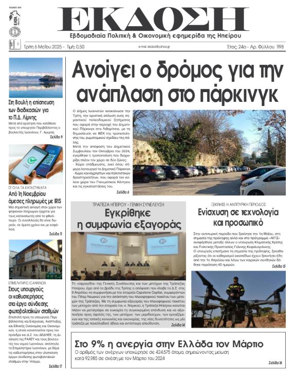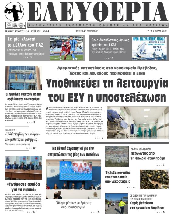 ΑρχικήΕΙΔΗΣΕΙΣΗΠΕΙΡΟΣ ΗΠΕΙΡΟΣ Τα πρωτοσέλιδα των γιαννιώτικων εφημερίδων 06.05.2025 0 FacebookTwitterWhatsAppEmailΤυπώνωViber Διαβάστε στα πρωτοσέλιδα των γιαννιώτικων εφημερίδων Τρίτη 6 Μαΐου 2025 TagsΓΙΑΝΝΙΩΤΙΚΕΣ ΕΦΗΜΕΡΙΔΕΣΠΡΩΤΟΣΕΛΙΔΑ FacebookTwitterWhatsAppEmailΤυπώνωViber Προηγούμενο άρθροΗ υποστελέχωση απειλεί τη βιωσιμότητα του ΕΣΥΕπόμενο άρθροΔιάλογος πρυτάνεων για την ενίσχυση της ασφάλειας στα ΑΕΙ ΣΧΕΤΙΚΑ ΑΡΘΡΑ Τα πρωτοσέλιδα των γιαννιώτικων εφημερίδων TOP STORIES 14.11.2025 Τα πρωτοσέλιδα των γιαννιώτικων εφημερίδων ΗΠΕΙΡΟΣ 13.11.2025 Τα πρωτοσέλιδα των γιαννιώτικων εφημερίδων ΗΠΕΙΡΟΣ 12.11.2025 Τα πρωτοσέλιδα των γιαννιώτικων εφημερίδων ΗΠΕΙΡΟΣ 11.11.2025 Τα πρωτοσέλιδα των γιαννιώτικων εφημερίδων TOP STORIES 08.11.2025 Τα πρωτοσέλιδα των γιαννιώτικων εφημερίδων ΗΠΕΙΡΟΣ 07.11.2025 ΣΤΗΝ ΙΔΙΑ ΚΑΤΗΓΟΡΙΑ Άρτα: Σύλληψη για επικίνδυνη οδήγηση και σωματική βλάβη από αμέλεια ΗΠΕΙΡΟΣ 14.11.2025 Συνελήφθη ημεδαπός στα Ιωάννινα για διακεκριμένες κλοπές ΗΠΕΙΡΟΣ 14.11.2025 Ενιαίο αστικό πάρκο στις παλιές στρατιωτικές φυλακές ΗΠΕΙΡΟΣ 14.11.2025 Τα πρωτοσέλιδα των γιαννιώτικων εφημερίδων TOP STORIES 14.11.2025 Διεθνές Γραφείο του Πανεπιστημίου Ιωαννίνων στη Νέα Υόρκη ΗΠΕΙΡΟΣ 14.11.2025 Ανακοινώσεις του Δημάρχου Αρταίων Χριστ. Σιαφάκα στο Δημοτικό Συμβούλιο ΗΠΕΙΡΟΣ 13.11.2025 ΜΗ ΧΑΣΕΤΕ Ενιαίο αστικό πάρκο στις παλιές στρατιωτικές φυλακές Τα πρωτοσέλιδα των γιαννιώτικων εφημερίδων Επιχείρηση της Αστυνομίας Ιωαννίνων στον Πειραιά – Σύλληψη για ναρκωτικά και οπλισμό Δένδρο στην πλατεία, συναυλία στο Πνευματικό Κέντρο; «Λεόντειοι όροι» στη σύμβαση για τα LED ΔΗΜΟΦΙΛΗ Ενιαίο αστικό πάρκο στις παλιές στρατιωτικές φυλακές Μητσοτάκης για ακρίβεια: Υπάρχει πρόβλημα, δεν θα βαφτίσω το ψάρι κρέας «Εξοικονομώ 2025»: Αυξάνεται κατά 490 εκατ. ευρώ το πρόγραμμα Τσίμαρης: Κατόπιν εορτής η κυβέρνηση, χωρίς σχέδιο και χωρίς στήριξη για τους κτηνοτρόφους Υπερθέρμανση του πλανήτη και αυξημένοι θάνατοι παγκοσμίως από τη ζέστη