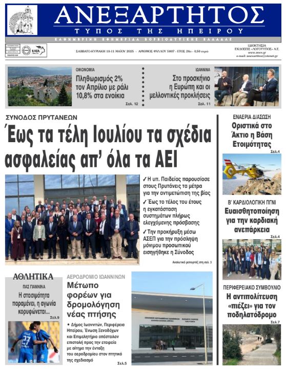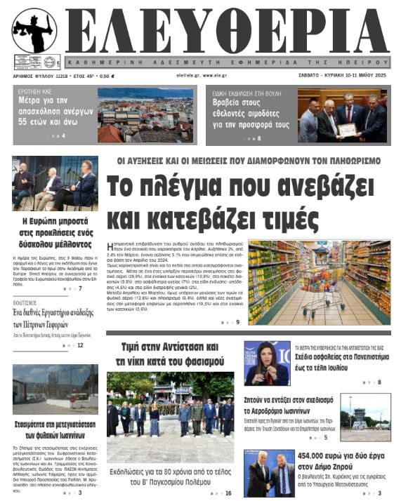 Διαβάστε στα πρωτοσέλιδα των γιαννιώτικων εφημερίδων 10-11 Μαΐου 2025