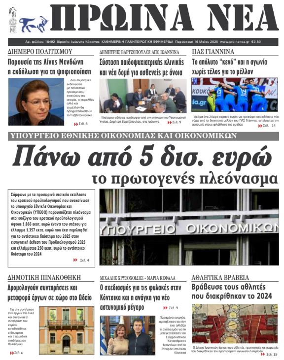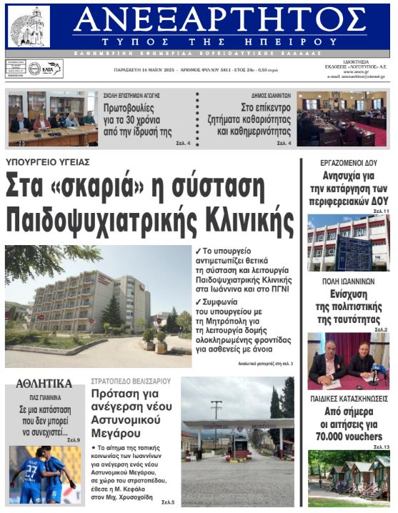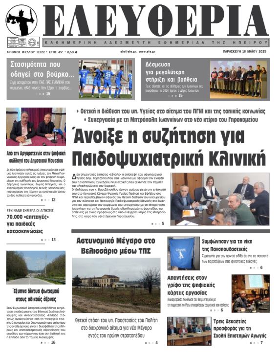 ΑρχικήΕΙΔΗΣΕΙΣΗΠΕΙΡΟΣ ΗΠΕΙΡΟΣ Τα πρωτοσέλιδα των γιαννιώτικων εφημερίδων 16.05.2025 0 FacebookTwitterWhatsAppEmailΤυπώνωViber Διαβάστε στα πρωτοσέλιδα των γιαννιώτικων εφημερίδων Παρασκευή 16 Μαΐου 2025 TagsΓΙΑΝΝΙΩΤΙΚΕΣ ΕΦΗΜΕΡΙΔΕΣΠΡΩΤΟΣΕΛΙΔΑ FacebookTwitterWhatsAppEmailΤυπώνωViber Προηγούμενο άρθροΟ. ΓΕΡΟΒΑΣΙΛΗ -«Ουδέν νεότερο» για το στρατόπεδο Βέρση στην ΆρταΕπόμενο άρθροΤο δεύτερο μέρος της «Κυνηγεσίας 2025» σήμερα στο ITV ΣΧΕΤΙΚΑ ΑΡΘΡΑ Τα πρωτοσέλιδα των γιαννιώτικων εφημερίδων TOP STORIES 31.10.2025 Τα πρωτοσέλιδα των γιαννιώτικων εφημερίδων ΗΠΕΙΡΟΣ 30.10.2025 Τα πρωτοσέλιδα των γιαννιώτικων εφημερίδων ΗΠΕΙΡΟΣ 28.10.2025 Τα πρωτοσέλιδα των γιαννιώτικων εφημερίδων ΗΠΕΙΡΟΣ 25.10.2025 Τα πρωτοσέλιδα των γιαννιώτικων εφημερίδων ΗΠΕΙΡΟΣ 24.10.2025 Τα πρωτοσέλιδα των γιαννιώτικων εφημερίδων ΗΠΕΙΡΟΣ 23.10.2025 ΣΤΗΝ ΙΔΙΑ ΚΑΤΗΓΟΡΙΑ Κλειστή για τεχνικούς λόγους η Εταιρεία Ηπειρωτικών Μελετών ΗΠΕΙΡΟΣ 31.10.2025 Αναβαθμίστηκε αισθητικά και λειτουργικά το Καμπέρειο Θέατρο ΗΠΕΙΡΟΣ 31.10.2025 Δίκτυο «Πίνδος»: Το γράμμα της ορεινής Ελλάδας δεν πρέπει να μείνει χωρίς παραλήπτη ΗΠΕΙΡΟΣ 31.10.2025 Οδηγούσε χωρίς άδεια που του είχε αφαιρεθεί λόγω μέθης ΗΠΕΙΡΟΣ 31.10.2025 Ακόμα δύο συλλήψεις για περιστατικό τραυματισμού ανηλίκου στη Θεσπρωτία ΗΠΕΙΡΟΣ 31.10.2025 Εξιχνίαση κλοπής κινητού από ηλικιωμένο στην Άρτα ΗΠΕΙΡΟΣ 31.10.2025 ΜΗ ΧΑΣΕΤΕ Ασταθής ο καιρός – Πού αναμένονται βροχές Μειωμένη η θετικότητα για covid-19 την τελευταία εβδομάδα Οι ιχθυολόγοι κρούουν τον κώδωνα του κινδύνου Αποκλεισμένοι ακόμη και από πάρκα και πλατείες… Τα πρωτοσέλιδα των γιαννιώτικων εφημερίδων ΔΗΜΟΦΙΛΗ Τα πρωτοσέλιδα των γιαννιώτικων εφημερίδων Στον Εισαγγελέα του Αρείου Πάγου ο Κώστας Τσιάρας για την ευλογιά αιγοπροβάτων Αποφασισμένοι να κρατήσουν ανοιχτό το κατάστημα ΕΛΤΑ στα Πράμαντα Το ΠΑΣΟΚ Θεσπρωτίας για το κλείσιμο των υποκαταστημάτων ΕΛΤΑ σε Παραμυθιά και Φιλιάτες Μαθήτρια 10 ετών κατέρρευσε στο σχολείο, την ώρα της γυμναστικής