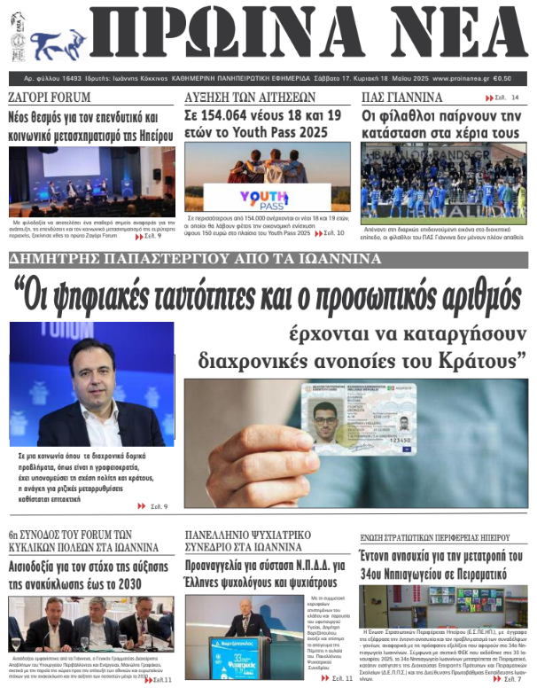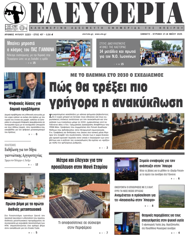 ΑρχικήΕΙΔΗΣΕΙΣΗΠΕΙΡΟΣ ΗΠΕΙΡΟΣ Τα πρωτοσέλιδα των γιαννιώτικων εφημερίδων 17.05.2025 0 FacebookTwitterWhatsAppEmailΤυπώνωViber Διαβάστε στα πρωτοσέλιδα των γιαννιώτικων εφημερίδων 17-18 Μαΐου 2025 TagsΓΙΑΝΝΙΩΤΙΚΕΣ ΕΦΗΜΕΡΙΔΕΣΠΡΩΤΟΣΕΛΙΔΑ FacebookTwitterWhatsAppEmailΤυπώνωViber Προηγούμενο άρθροΠρώτο βήμα με το πρώτο διεθνές μεταπτυχιακόΕπόμενο άρθροΤα του Καίσαρος… ΣΧΕΤΙΚΑ ΑΡΘΡΑ Τα πρωτοσέλιδα των γιαννιώτικων εφημερίδων ΗΠΕΙΡΟΣ 12.11.2025 Τα πρωτοσέλιδα των γιαννιώτικων εφημερίδων ΗΠΕΙΡΟΣ 11.11.2025 Τα πρωτοσέλιδα των γιαννιώτικων εφημερίδων TOP STORIES 08.11.2025 Τα πρωτοσέλιδα των γιαννιώτικων εφημερίδων ΗΠΕΙΡΟΣ 07.11.2025 Τα πρωτοσέλιδα των γιαννιώτικων εφημερίδων ΗΠΕΙΡΟΣ 06.11.2025 Τα πρωτοσέλιδα των γιαννιώτικων εφημερίδων ΗΠΕΙΡΟΣ 05.11.2025 ΣΤΗΝ ΙΔΙΑ ΚΑΤΗΓΟΡΙΑ Τα έργα στο δασύλλιο στο στόχαστρο της ΕΔΕΛ ΗΠΕΙΡΟΣ 12.11.2025 Φιλιππιάδα: Ξεκίνησε η διαχείριση των ζωικών αποβλήτων από την Κέρκυρα TOP STORIES 12.11.2025 Στρατηγικό εργαλείο για τη βιώσιμη ανάπτυξη το ΤΠΣ Βορείων Τζουμέρκων ΗΠΕΙΡΟΣ 12.11.2025 Τα πρωτοσέλιδα των γιαννιώτικων εφημερίδων ΗΠΕΙΡΟΣ 12.11.2025 Ενημερωτική δράση για τον σακχαρώδη διαβήτη στα Ιωάννινα ΗΠΕΙΡΟΣ 11.11.2025 Συνελήφθη αλλοδαπός διωκόμενος στην Κακαβιά ΗΠΕΙΡΟΣ 11.11.2025 ΜΗ ΧΑΣΕΤΕ Τα έργα στο δασύλλιο στο στόχαστρο της ΕΔΕΛ Φιλιππιάδα: Ξεκίνησε η διαχείριση των ζωικών αποβλήτων από την Κέρκυρα Εντυπωσιακή αύξηση στις δωρεές οργάνων και μεταμοσχεύσεις στην Ελλάδα Συμβαδίζει με την κεντρική «γραμμή» ο ΣΥΡΙΖΑ Ιωαννίνων Επί τάπητος υποδομές, περιβάλλον και ΤΠΣ ΔΗΜΟΦΙΛΗ Αλλάζω Σύστημα Θέρμανσης και Θερμοσίφωνα: Ο πίνακας με τους πρώτους δικαιούχους Κρήτη: Επιχειρηματίας εντοπίστηκε νεκρή μέσα στο κατάστημά της στο Ηράκλειο Οδηγός τρένου κοιμήθηκε ενώ έτρεχε με 80 χλμ την ώρα – Εκσφενδονίστηκαν οι επιβάτες Στεγαστικό πρόγραμμα των Ενόπλων Δυνάμεων: 10.454 νέες κατοικίες – 12 παιδικοί σταθμοί Το 71% των επιχειρήσεων στην Ελλάδα δυσκολεύεται να βρει προσωπικό