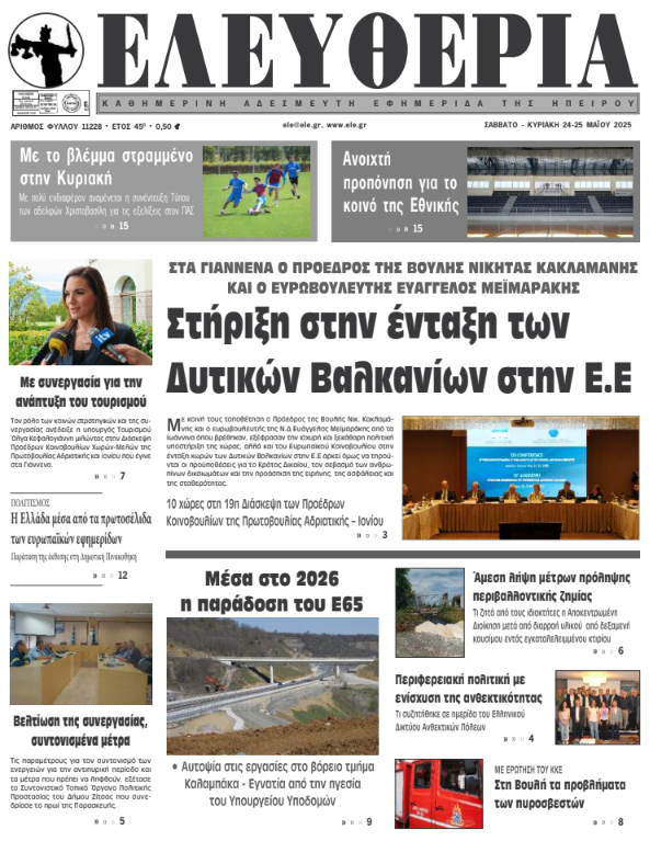 ΑρχικήΕΙΔΗΣΕΙΣΗΠΕΙΡΟΣ ΗΠΕΙΡΟΣ Τα πρωτοσέλιδα των γιαννιώτικων εφημερίδων 24.05.2025 0 FacebookTwitterWhatsAppEmailΤυπώνωViber Διαβάστε στα πρωτοσέλιδα των γιαννιώτικων εφημερίδων 24-25 Μαΐου 2025 TagsΓΙΑΝΝΙΩΤΙΚΕΣ ΕΦΗΜΕΡΙΔΕΣΠΡΩΤΟΣΕΛΙΔΑ FacebookTwitterWhatsAppEmailΤυπώνωViber Προηγούμενο άρθροΣΥΛΛΟΓΟΣ ΓΕΩΠΟΝΩΝ ΠΡΕΒΕΖΑΣ -Άμεση αποκατάσταση της παραλίας ΜονολιθίουΕπόμενο άρθροΔ. ΜΙΧΑΗΛΙΔΟΥ -“Σε 3 μήνες απορροφήθηκε το 40% του προγράμματος Σπίτι μου ΙΙ” ΣΧΕΤΙΚΑ ΑΡΘΡΑ Τα πρωτοσέλιδα των γιαννιώτικων εφημερίδων TOP STORIES 13.01.2026 Τα πρωτοσέλιδα των γιαννιώτικων εφημερίδων ΗΠΕΙΡΟΣ 11.01.2026 Τα πρωτοσέλιδα των γιαννιώτικων εφημερίδων ΗΠΕΙΡΟΣ 09.01.2026 Τα πρωτοσέλιδα των γιαννιώτικων εφημερίδων ΗΠΕΙΡΟΣ 08.01.2026 Τα πρωτοσέλιδα των γιαννιώτικων εφημερίδων ΗΠΕΙΡΟΣ 06.01.2026 Τα πρωτοσέλιδα των γιαννιώτικων εφημερίδων ΗΠΕΙΡΟΣ 01.01.2026 ΣΤΗΝ ΙΔΙΑ ΚΑΤΗΓΟΡΙΑ ΕΞΑΙΤΙΑΣ ΤΩΝ ΧΑΜΗΛΩΝ ΘΕΡΜΟΚΡΑΣΙΩΝ -Νωρίτερα η βραδινή αποκομιδή ΗΠΕΙΡΟΣ 13.01.2026 Με λαμπρότητα εορτάστηκε η μνήμη του Αγίου Ιερεμία στη Ζίτσα ΗΠΕΙΡΟΣ 13.01.2026 Γεωργόπουλος για Περιφέρεια Ηπείρου: «Αναγκαία αλλαγή ηγεσίας και διαφάνειας» ΗΠΕΙΡΟΣ 13.01.2026 Στην Κομισιόν οι διακοπές ρεύματος στην Ήπειρο ΗΠΕΙΡΟΣ 13.01.2026 Αντιδράσεις για τη συμφωνία Ε.Ε. – Mercosur και επιπτώσεις στον πρωτογενή τομέα της Ηπείρου ΗΠΕΙΡΟΣ 13.01.2026 Άμεση σύλληψη για κλοπή τσάντας από Ι.Χ. ΗΠΕΙΡΟΣ 13.01.2026 ΜΗ ΧΑΣΕΤΕ Το σχέδιο του Δήμου Ιωαννιτών για την αντιμετώπιση του κυκλοφοριακού προβλήματος Περιβαλλοντική καταστροφή στο Μονολίθι Πλημμύρισε ο χώρος πλύσης των απορριμματοφόρων του Δήμου «Μυρίζει συγκάλυψη ευθυνών» Δοκιμάζονται οι αντοχές των επιχειρήσεων ΔΗΜΟΦΙΛΗ Χατζηδάκης: Έντεκα κυβερνητικές δεσμεύσεις για το 2026 Τα πρωτοσέλιδα των γιαννιώτικων εφημερίδων Χαρίτσης: Η κυβέρνηση Μητσοτάκη πρέπει να φύγει για την προστασία της κοινωνίας Συνελήφθη φυγόποινος στην Κακαβιά Έδειξε σφυγμό, αλλά χρειάζεται νίκες…