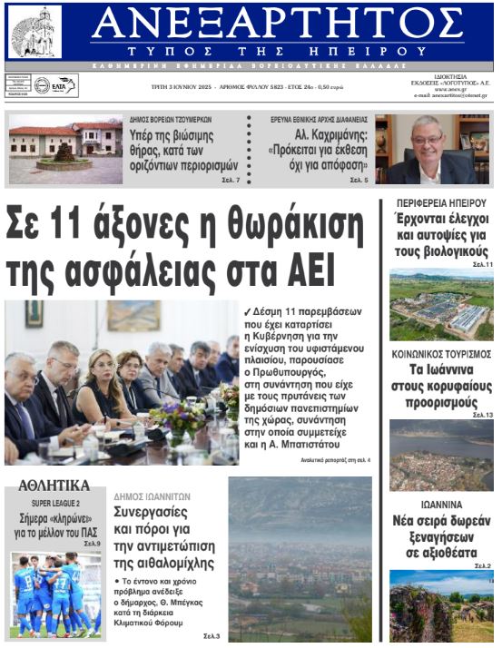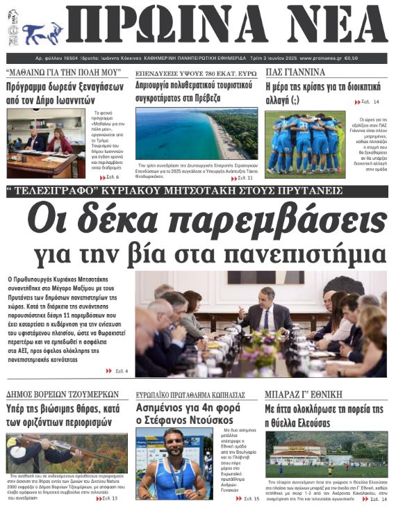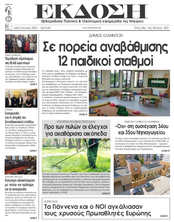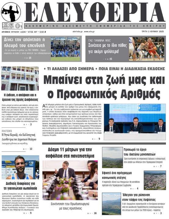 Διαβάστε στα πρωτοσέλιδα των γιαννιώτικων εφημερίδων Τρίτη 3 Ιουνίου 2025
