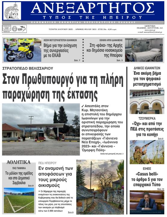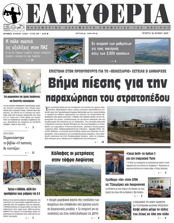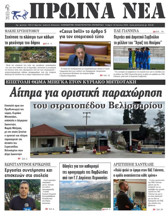 Διαβάστε στα πρωτοσέλιδα των γιαννιώτικων εφημερίδων Τετάρτη 18 Ιουνίου 2025